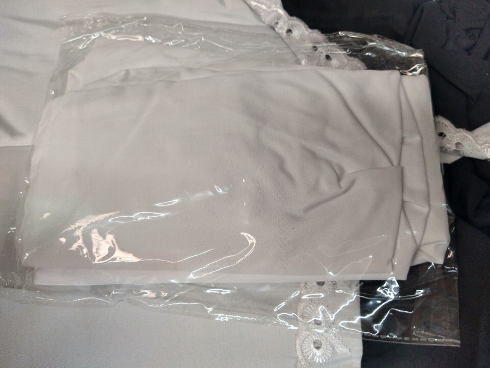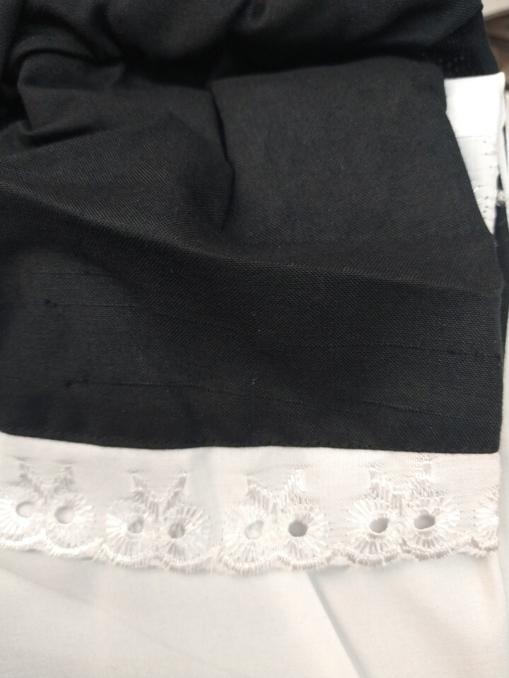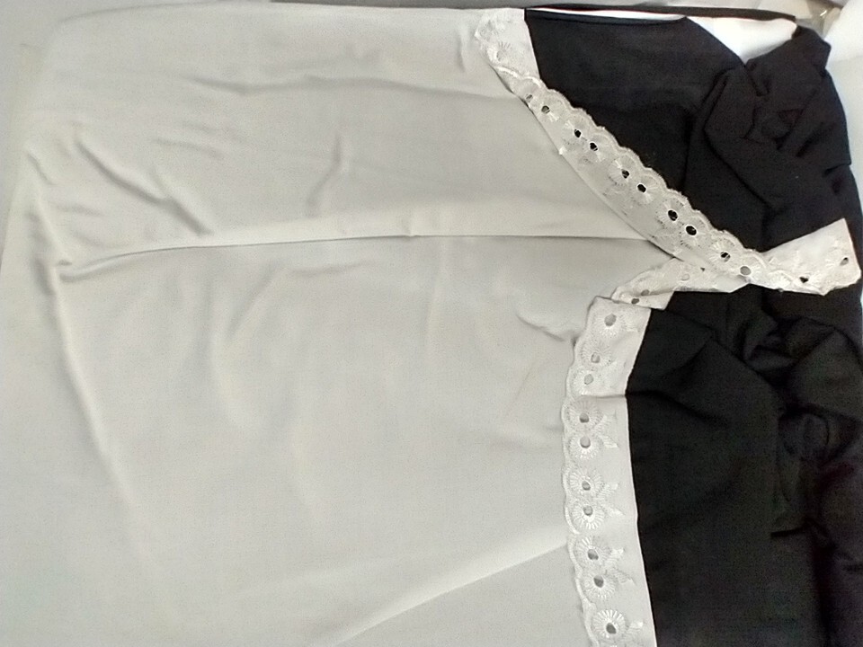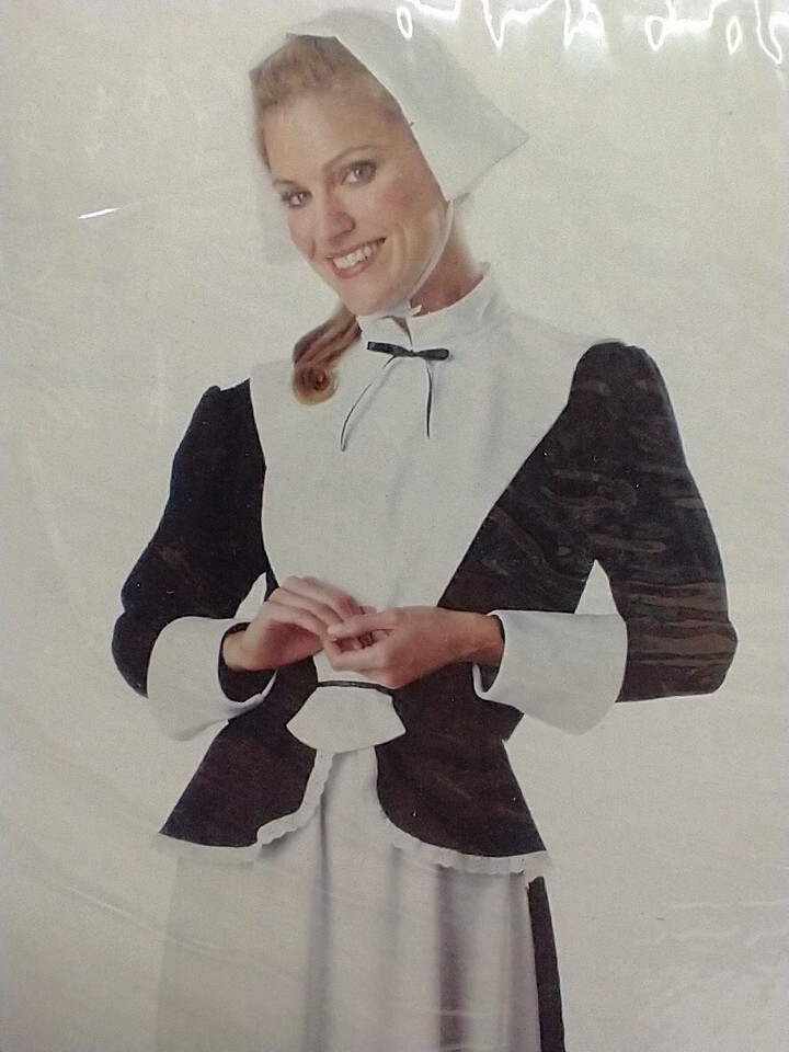 Adult Pilgrim Woman Costume. Adult - Size: XL. White and Black. Fabric is stiffer, expect wrinkles / creases from being folded. DOES NOT