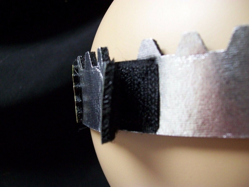 Steampunk Themed Metallic Gold / Silver Cog Gear Costume Crown. Made of Lightweight Foam. The back is black and unfinished. Has velcro tabs for closure. One Size Fits Most Adults. For ages 14 and up. Could be used as an accessory with many costumes.