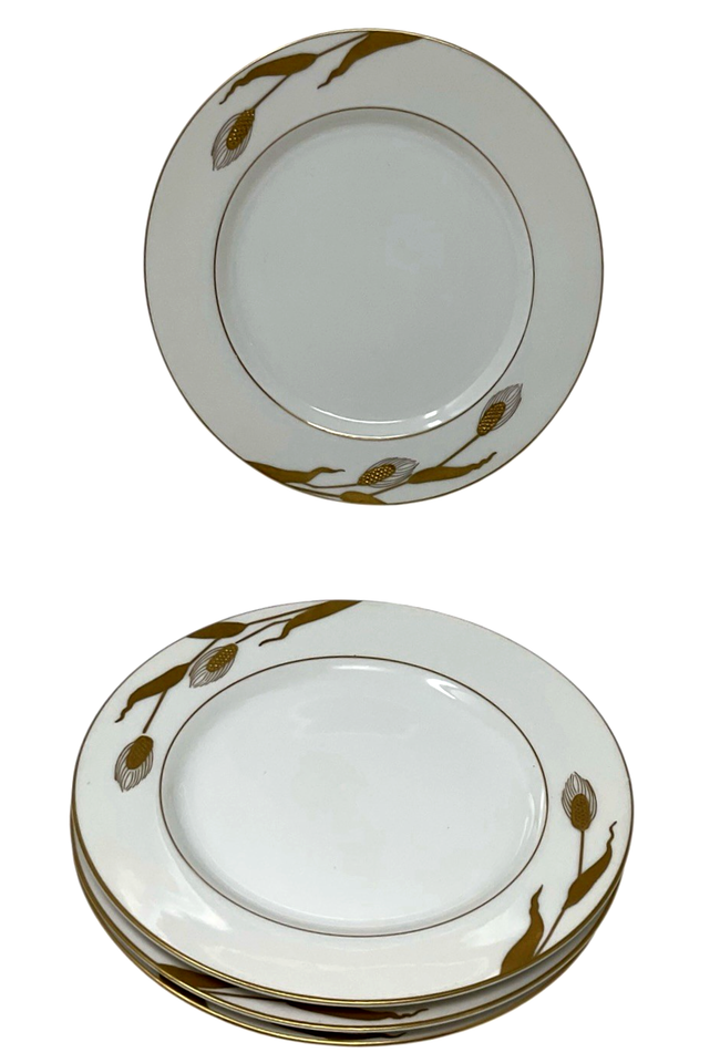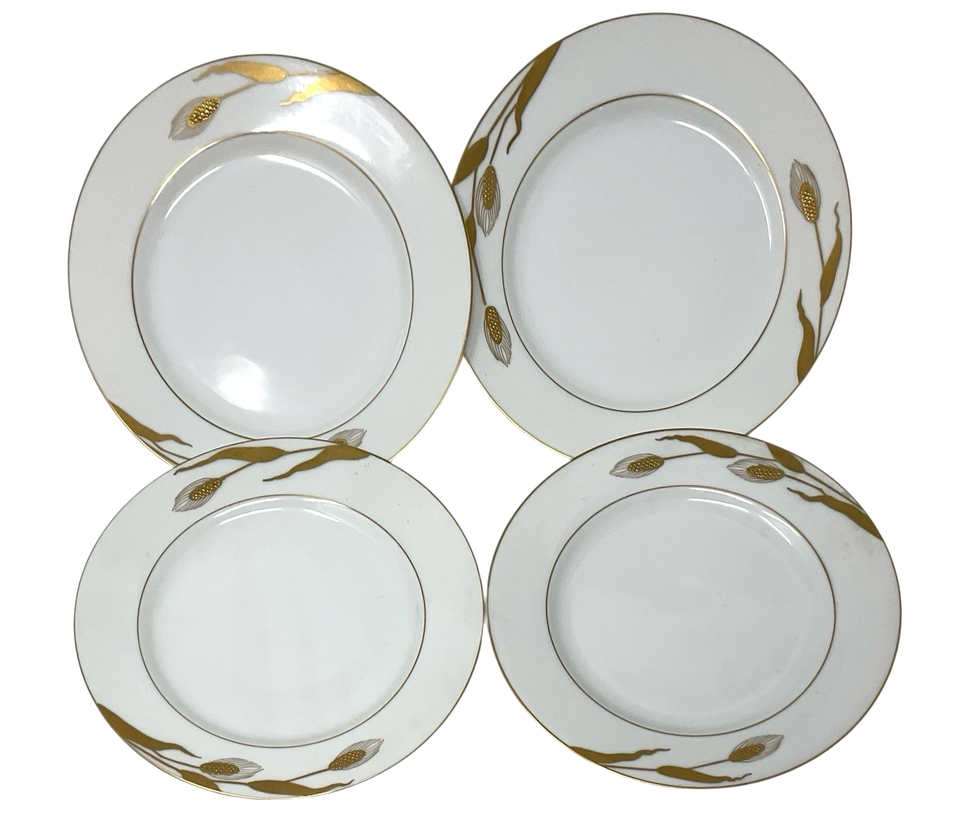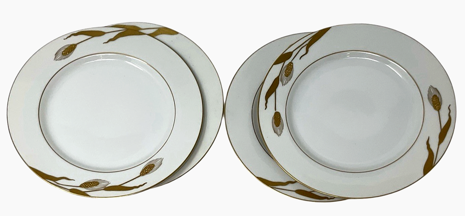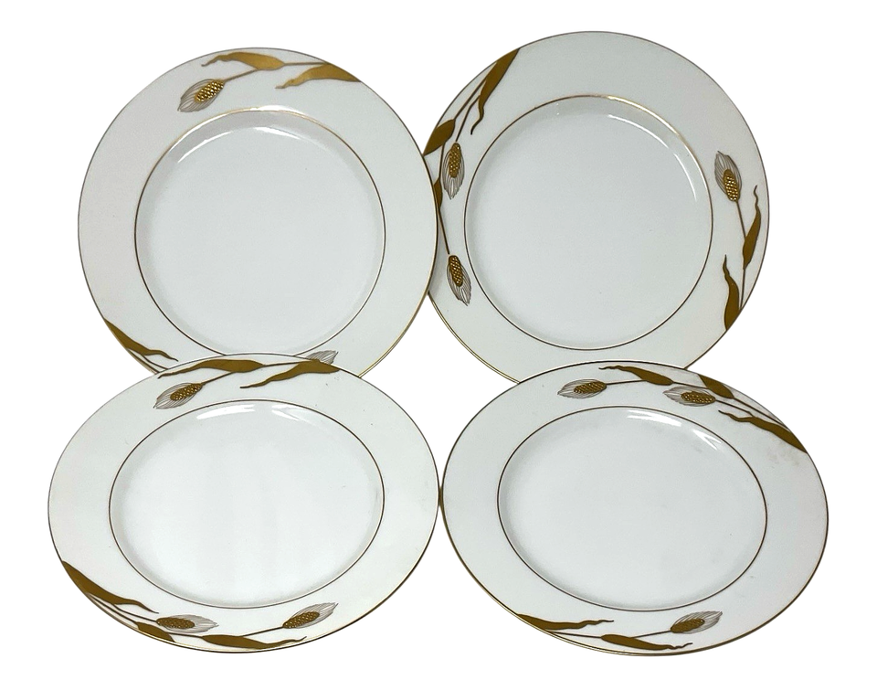 Fukagawa Arita Golden Wheat Salad Plates – Set of 4, 7-5/8" Gold Rim Japan