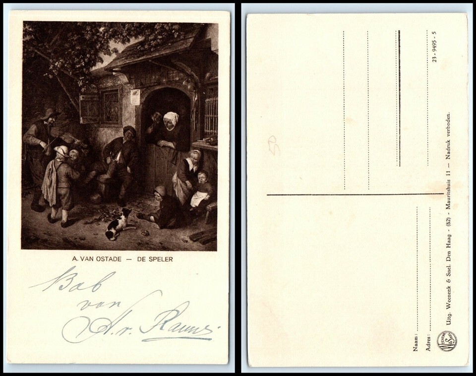 Vintage ART Postcard - "The Fiddler" by Adriaen van Ostade AB