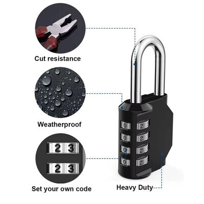 Keep your belongings secure with this Heavy Duty 4-Digit Combination Padlock, designed for maximum security and durability. Ideal for outdoor and indoor use, this padlock features a resettable combination, waterproof design, and strong metal construction that?s built to last.