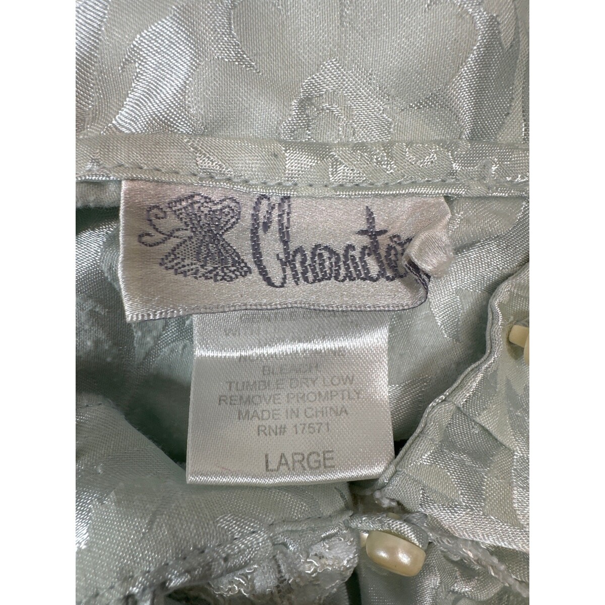 Character Light Blue Long Sleeve Button Down Satin Nightgown Vintage Size Large