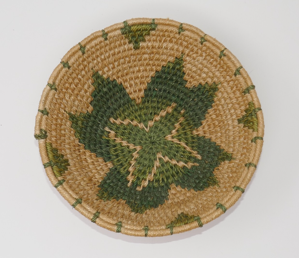Woven Coiled Southwestern Green Design Round Basket Bowl