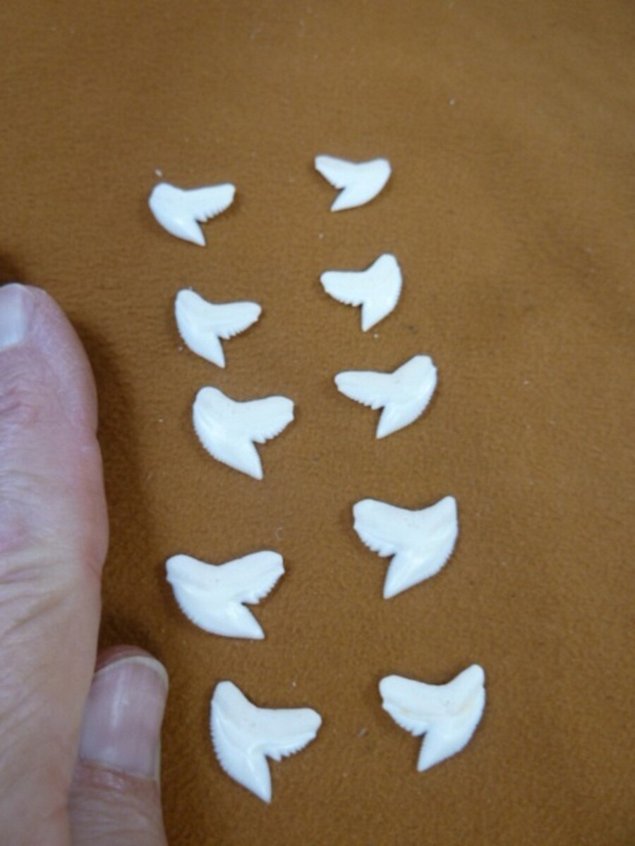 (#SW1-N-2-55) This sale is for a bag of 10 matched teeth (5 lefts and 5 rights) for making earrings, NOT WIRED loose genuine shark teeth, using modern, white, TIGER SHARK TEETH shark teeth from the legal Philippines fishing industry that uses the whole shark (meat, hide and teeth).