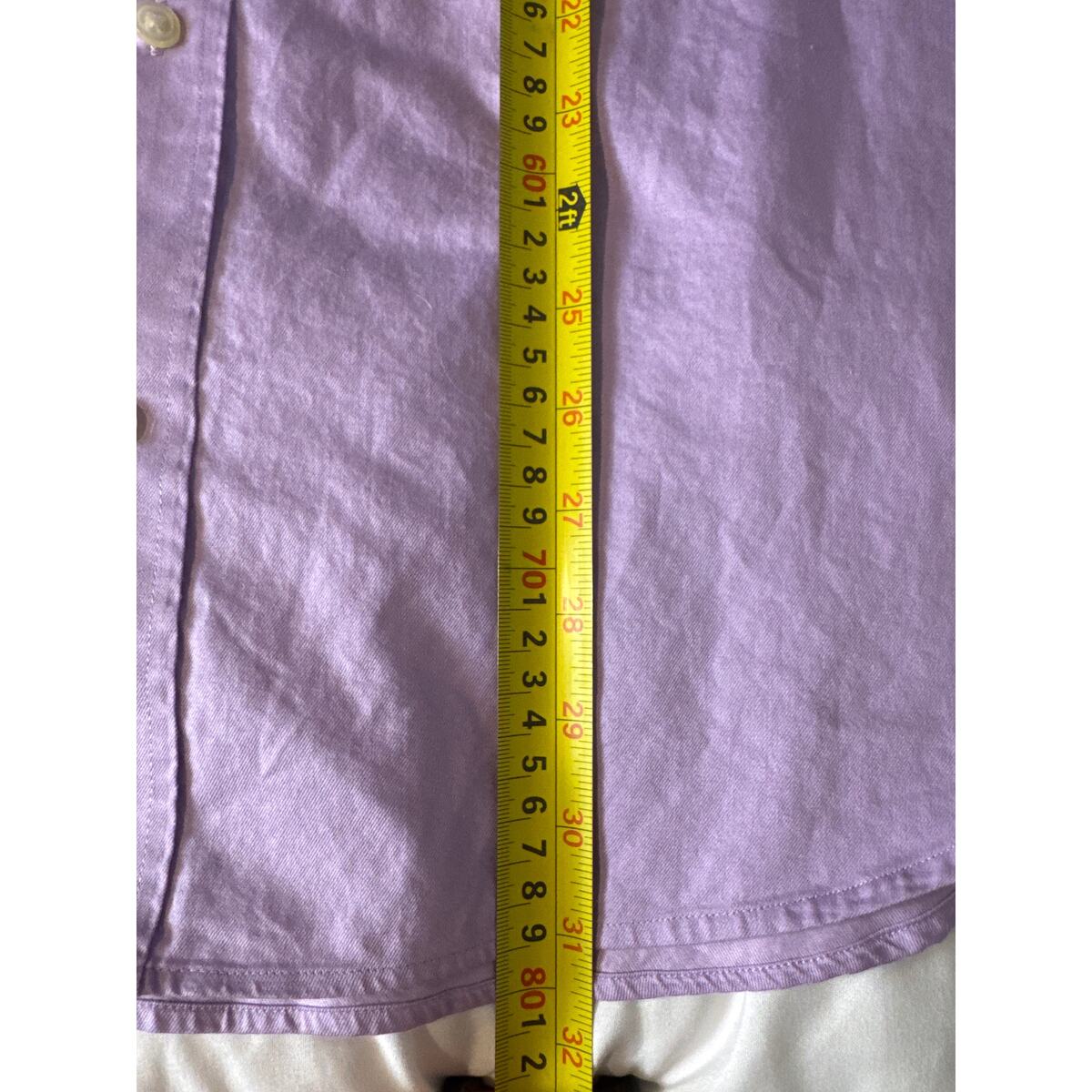 This Banana Republic men?s dress shirt offers a polished, modern look with its slim fit and non-iron cotton fabric?perfect for office wear or formal occasions. Made from 100% cotton, it?s soft, breathable, and easy to maintain. The lavender color adds a refined touch while remaining versatile for pairing with suits or jeans.