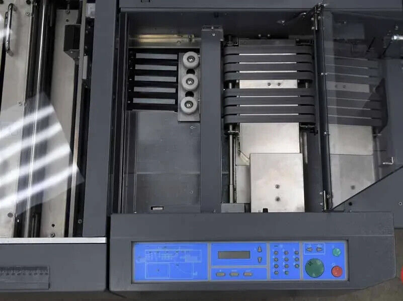 The Duplo DC-645 is the ideal finishing solution for digital color documents. Unlike any in the industry, the DC-645 slits, cuts, and creases documents in a single pass at an incredible speed of 26 sheets per minute. Unattractive white borders and cracked spines of digitally printed documents are problems of the past as the DC-645 produces a wide variety of professional quality, full-bleed applications such as business cards, greeting cards, invitations, brochures, pamphlets, catalogs, posters, book/CD covers, photographs, and more by simply loading the automatic high-capacity feeder.