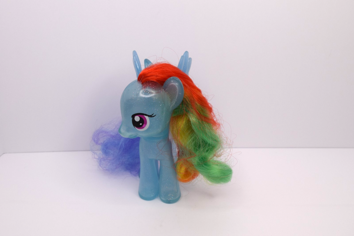 My Little Pony G4 Clear Glitter Rainbow Dash 6" Pony Figure. Pre-owned in good condition. Some light signs of wear. See all photos for details and condition. Will ship USPS Ground Advantage.