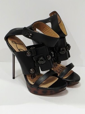 Lanvin ETE 2011 Black Leather Heel Stiletto Ankle Strap Stud Pump EU 35 US 4 New