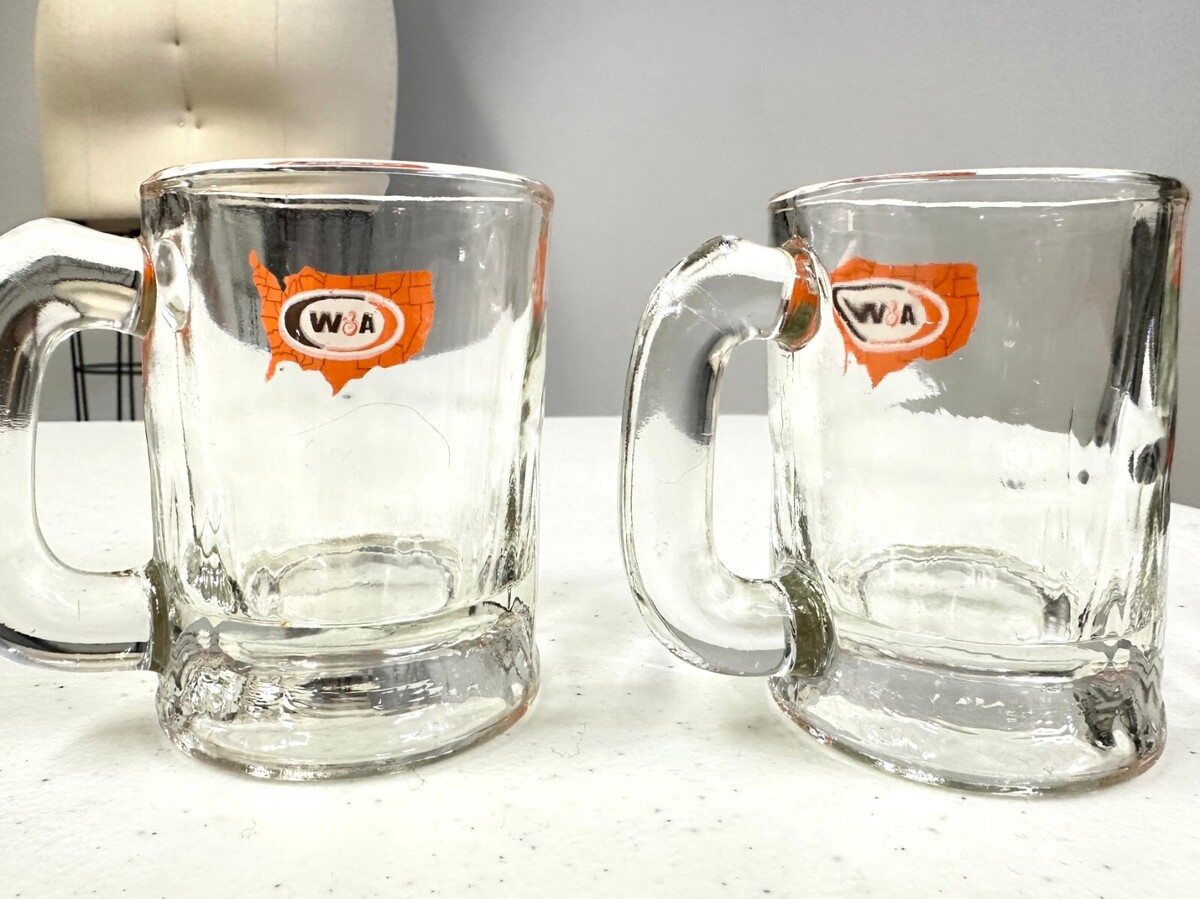 This set of two vintage A W Root Beer mugs are 3 inches tall. The clear glass allows for the root beer to be showcased and enjoyed.