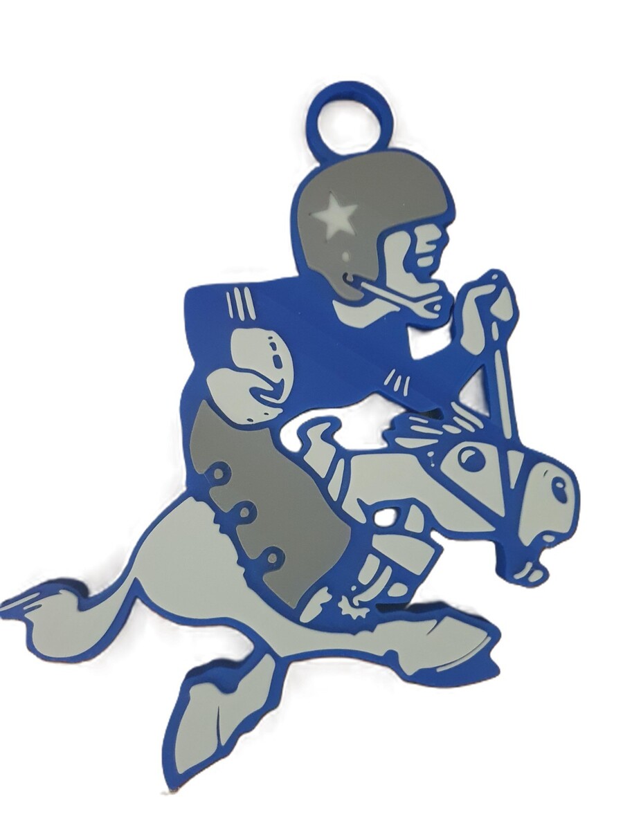 Description: Show your team pride with this Dallas Cowboys Classic Figure Logo Chain! Featuring a bold retro-style Cowboys rider pendant and a durable blue and white 32" plastic chain, this jumbo-sized necklace is perfect for game days, tailgates, or displaying your fandom year-round. Lightweight and eye-catching, it?s a must-have for any true Cowboys supporter. Made to stand out and show your loyalty in classic style!