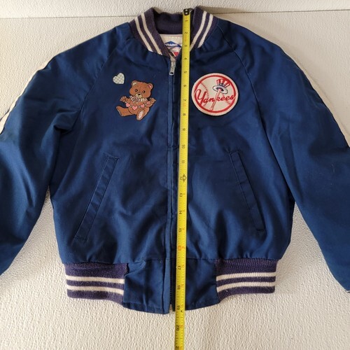 Vintage MLB New York Yankees Teddy Bear Full Zip Track Bomber Jacket Youth Size 7. Some spots, see images for condition. Images show actual item that will ship.