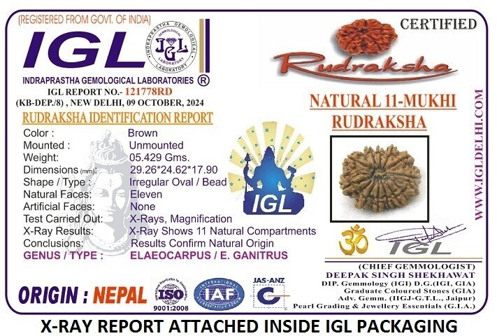 Super Collector 11 mukhi Rudraksha - 29.26 mm - Nepal - IGL Certified