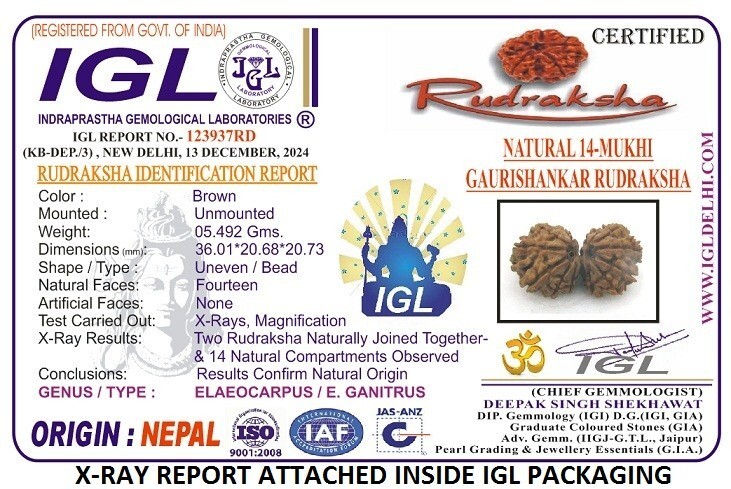 Rare 14 Mukhi Gauri Shankar Rudraksha - 36.01 mm - Nepal - IGL Certified