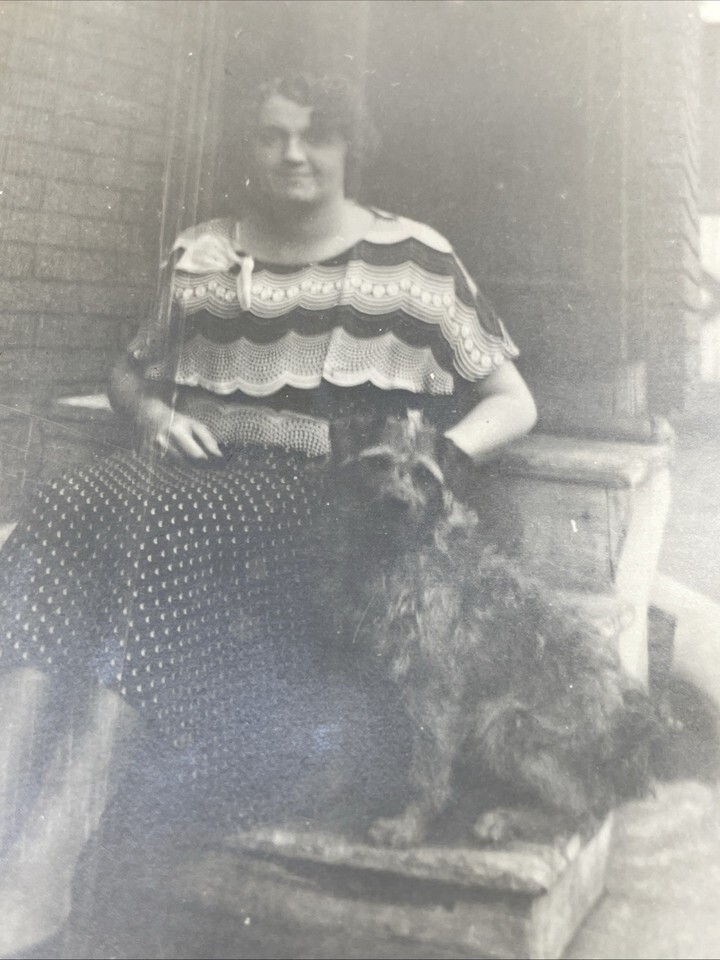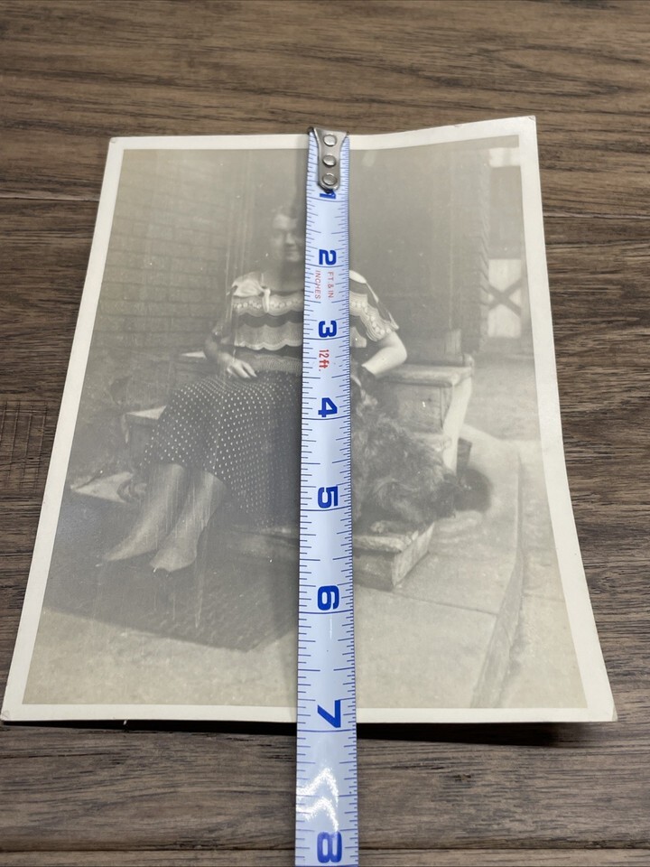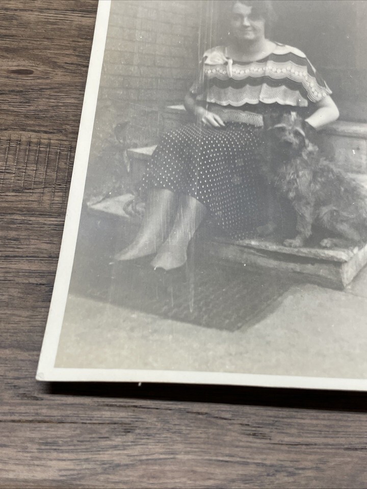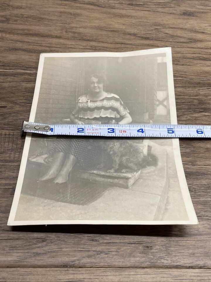 Vintage 1950's Black & White Photograph Woman with Dog Stoop 5X7 KG JD