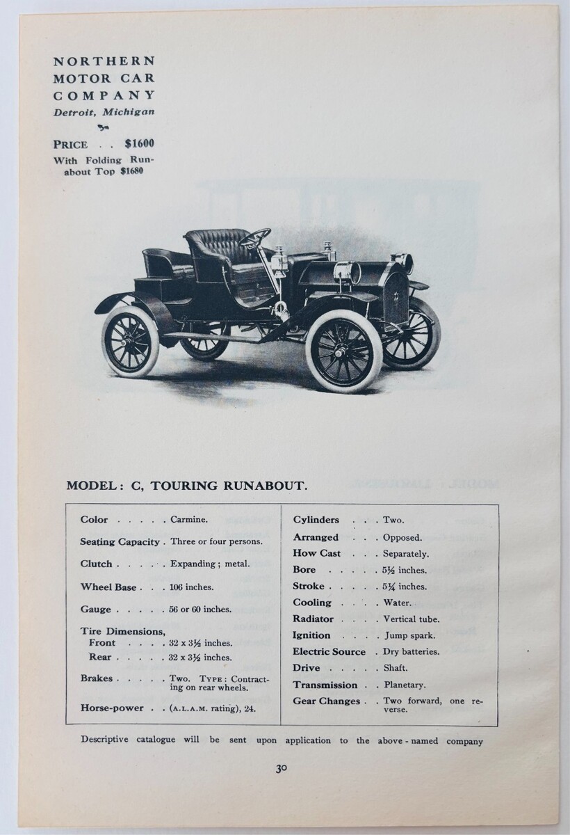 1908 Northern Motor Model C Runabout Catalog and 44 similar items