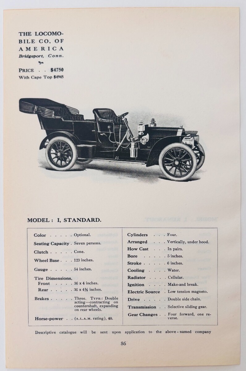 1908 Locomobile Model I Standard Catalog and 44 similar items