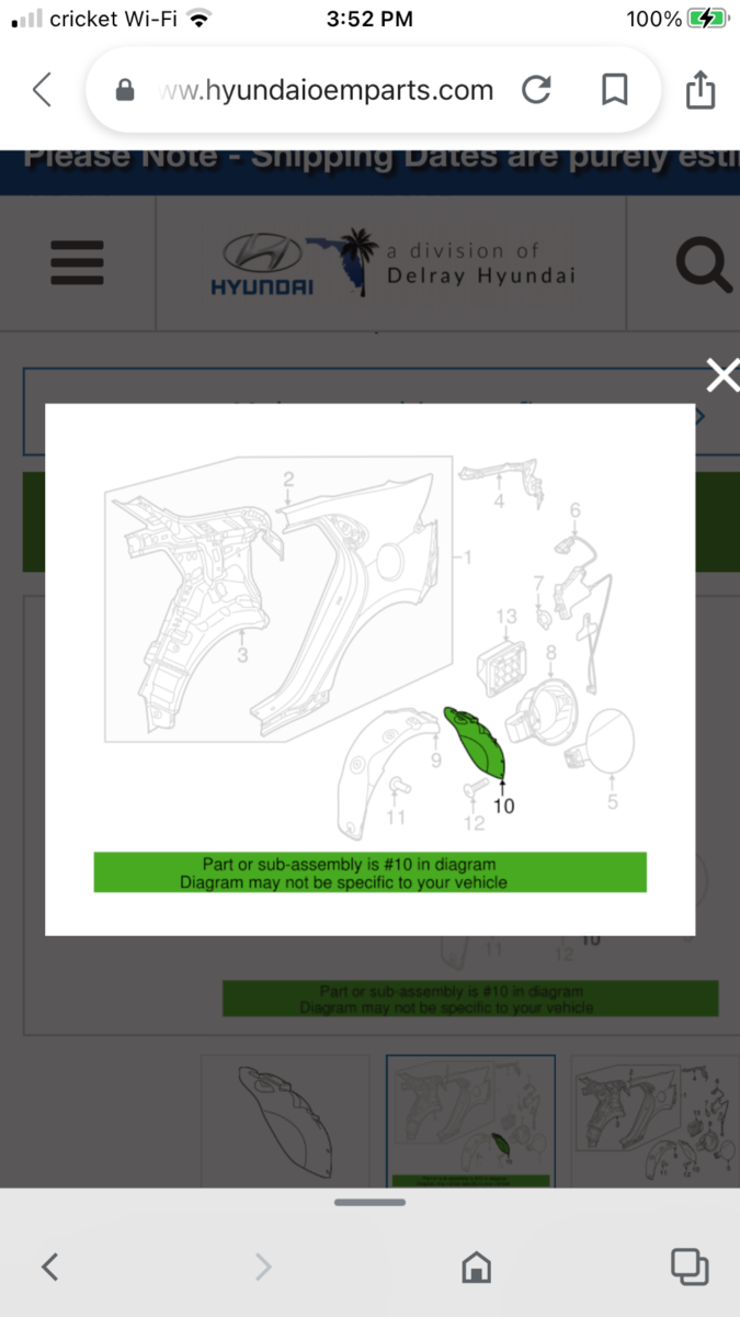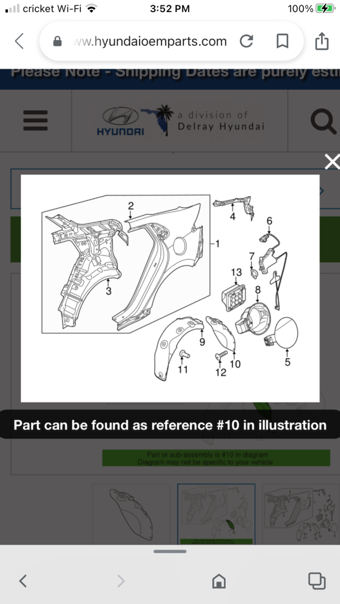 2017 2018 2019 2020 2021 2022 HYUNDAI IONIQ REAR LEFT OEM WHEEL GUARD 86821G2000