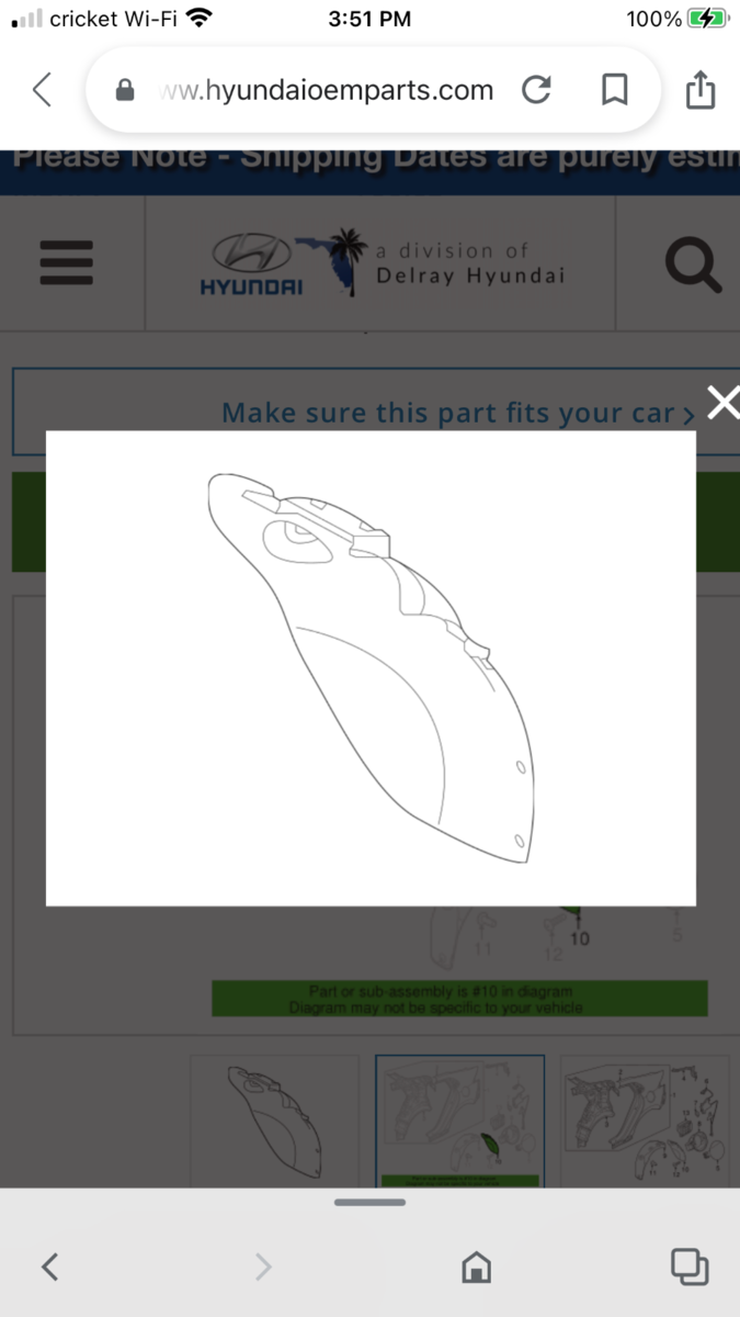 2017-2022 HYUNDAI IONIQ REAR LEFT OEM WHEELHOUSE LINER