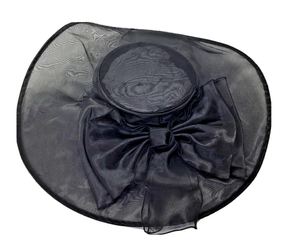 Josette Women Kentucky Derby Church Dress Organza Wide Brim Flat Hat, Black