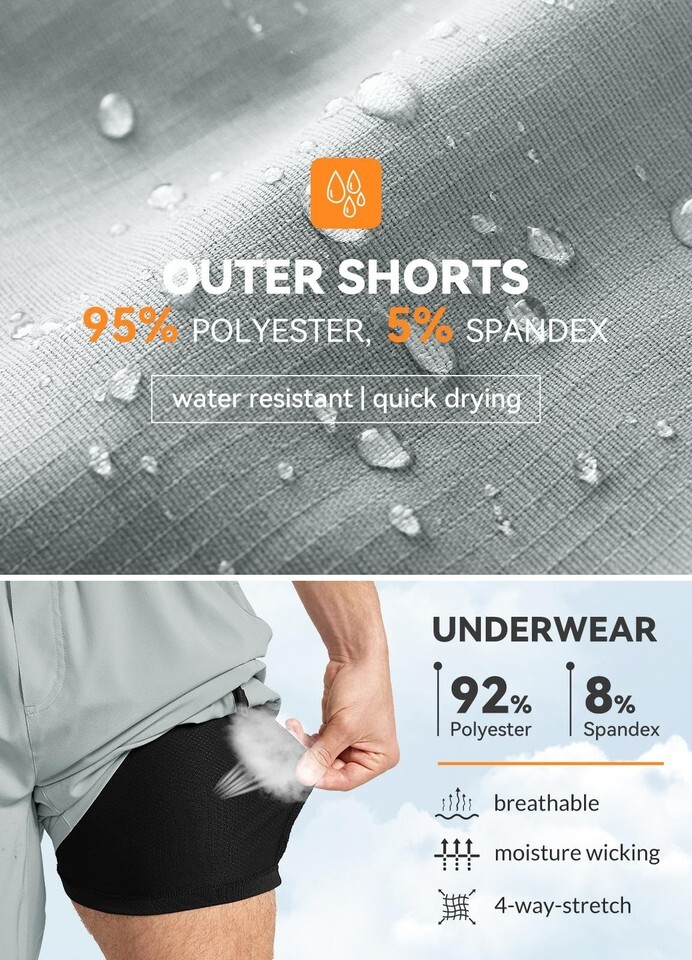 2 in 1 Design, Comfortable Fit: The mountain bike shorts for men comes with compression liner, cycling underwear with padding, is adequately sized and thick enough to offer decent protection during middle-distance riding, adapted to the male anatomy. And the stretch fabric provides a snug fit. Even when standing and walking, it can fit well without any strange feeling.