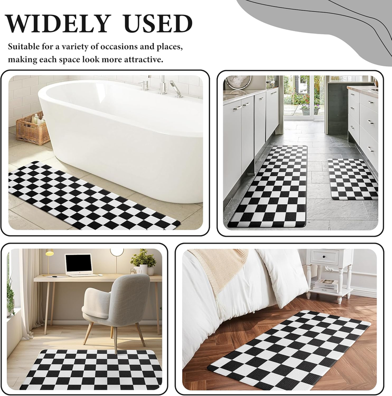 ?Comfortable Elegant Simplicity?:Designed with a classic checkered pattern and a 0.4-inch thick cushioned surface, this PVC mat set brings minimalist charm to any kitchen.The clean, geometric design adds a sleek and sophisticated touch to your kitchen, perfectly balancing style and comfort.