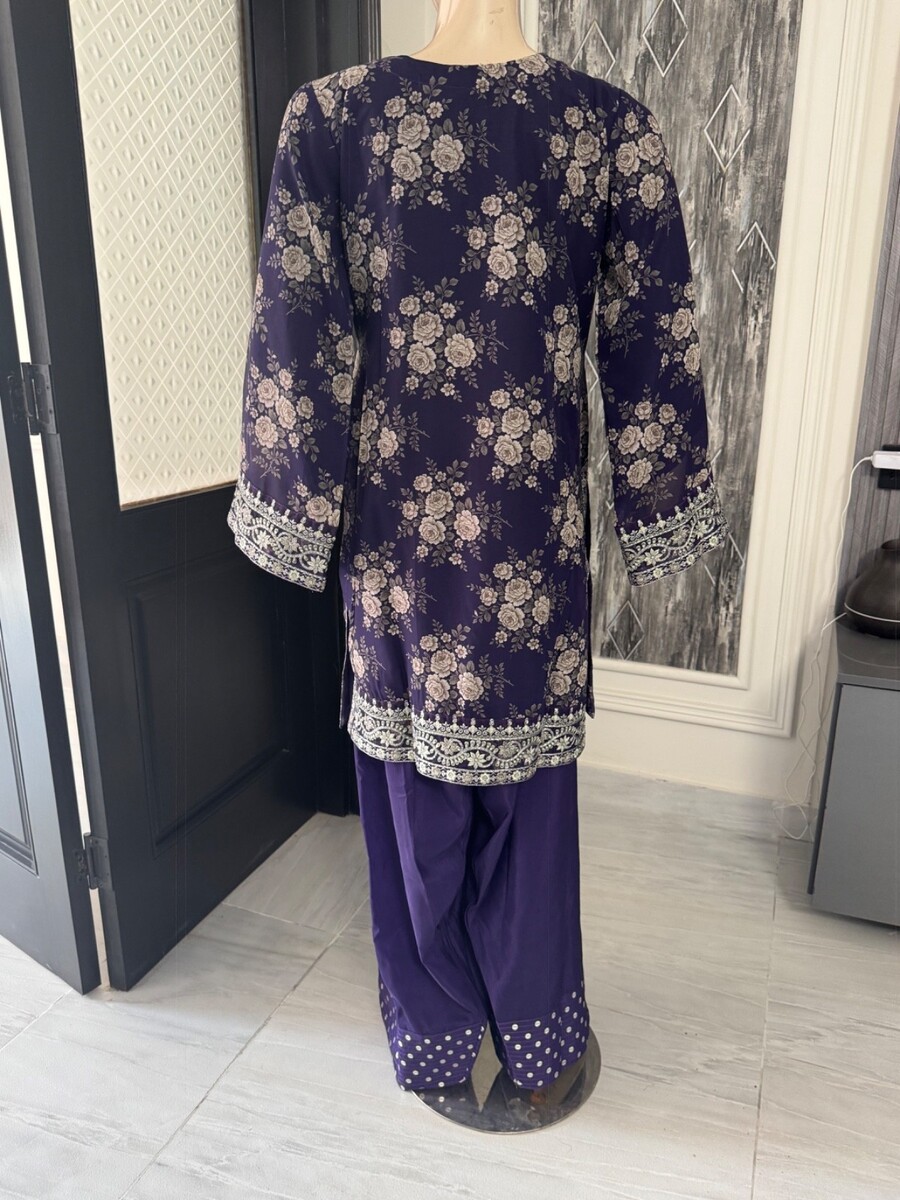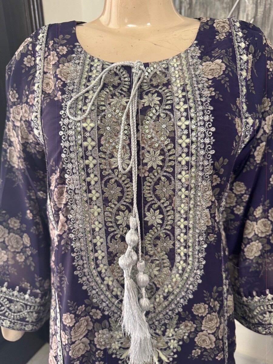 Pakistani Dark Purple Georgette Straight Shirt 3-PCS dress ,S