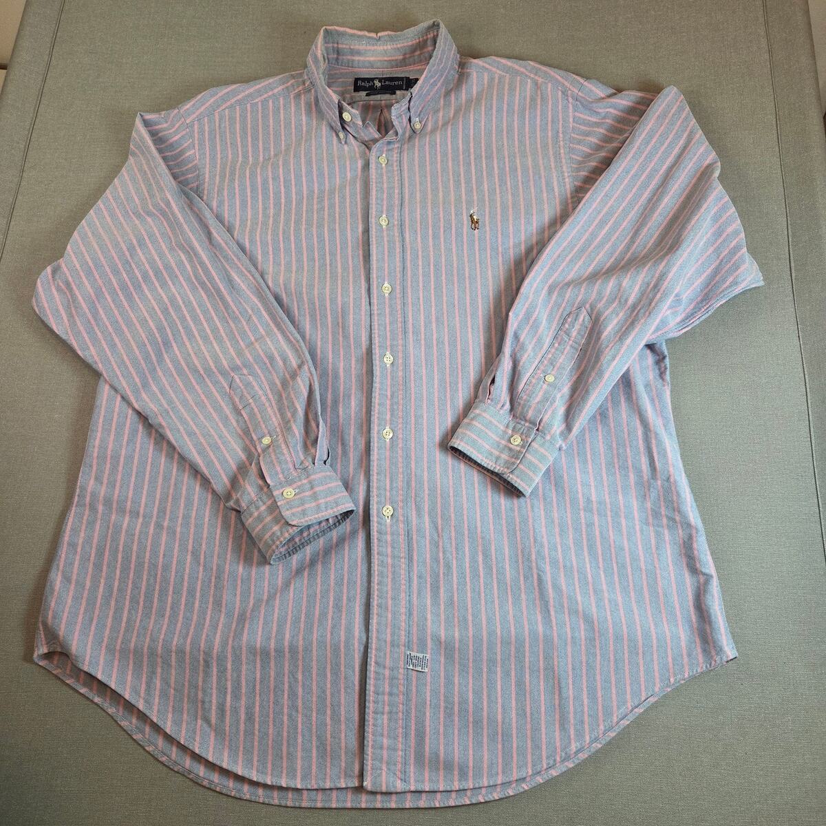 Ralph Lauren Striped Button Down Shirt Men’s 17-35 Purple Pink Cotton