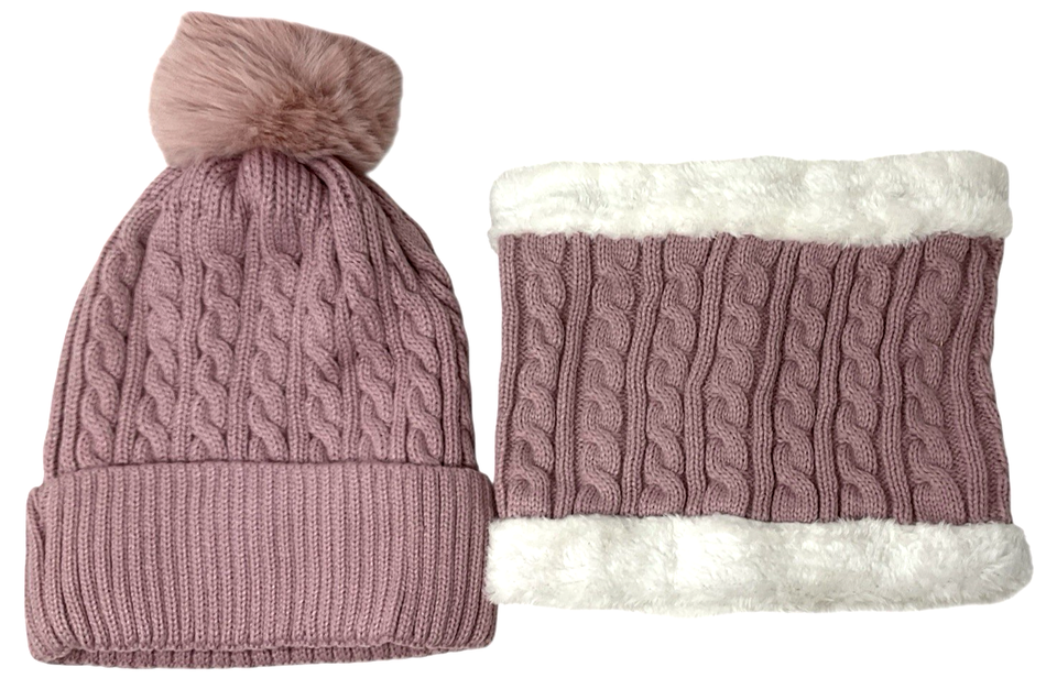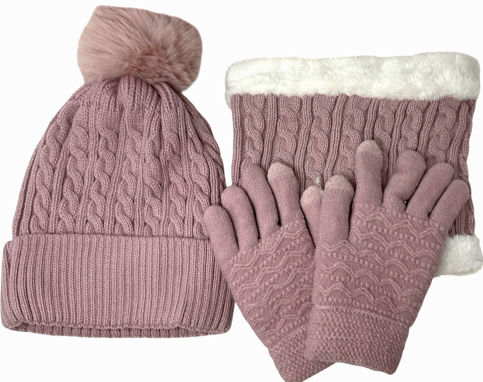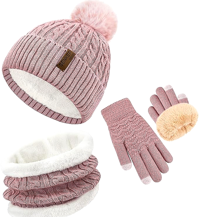 Senker Pink Winter Beanie Gloves Neck Warmer Set Women’s Soft Knit Cozy Gift Set