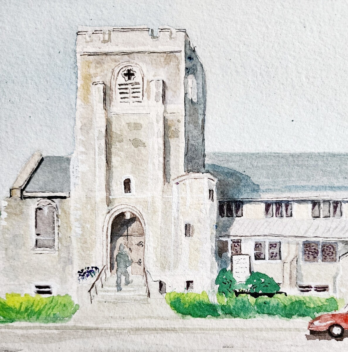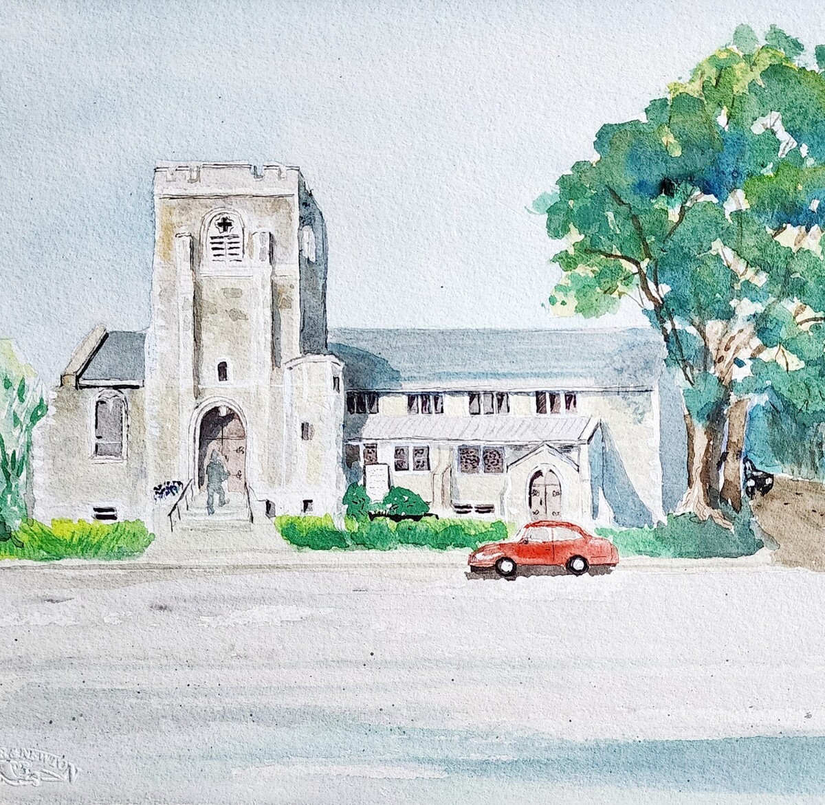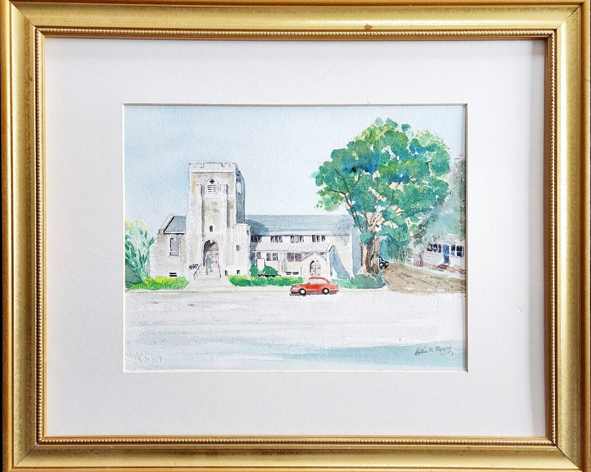Billie Muncy Original Watercolor Painting Signed Church Framed Vintage GstRm