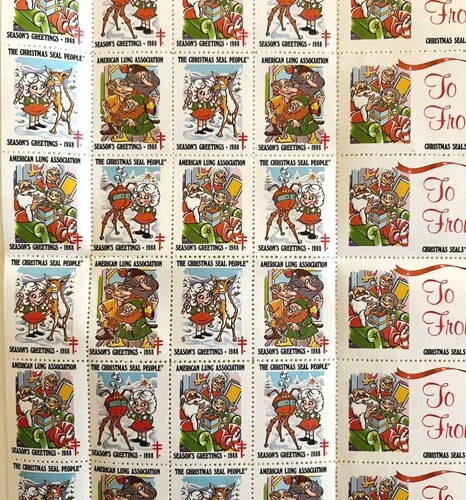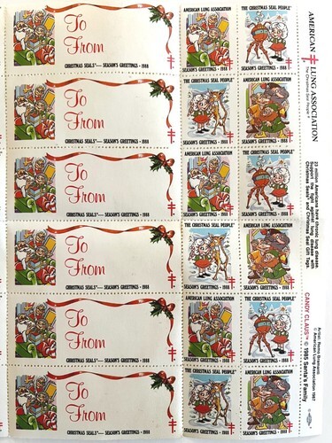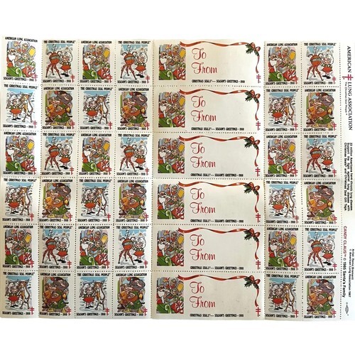 1988 Candy Claus Christmas Stamps American Lung Association Complete 42 Pcs E48