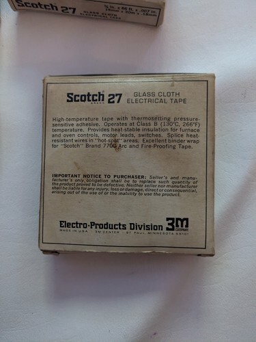 Up for sale is a used Lot Of 4 Scotch Glass Cloth Electrical Tape No 27 3M USA. 3 are new in box and 1 is new with out box.