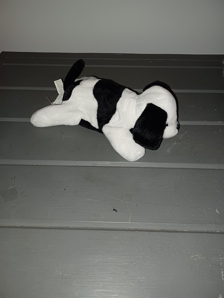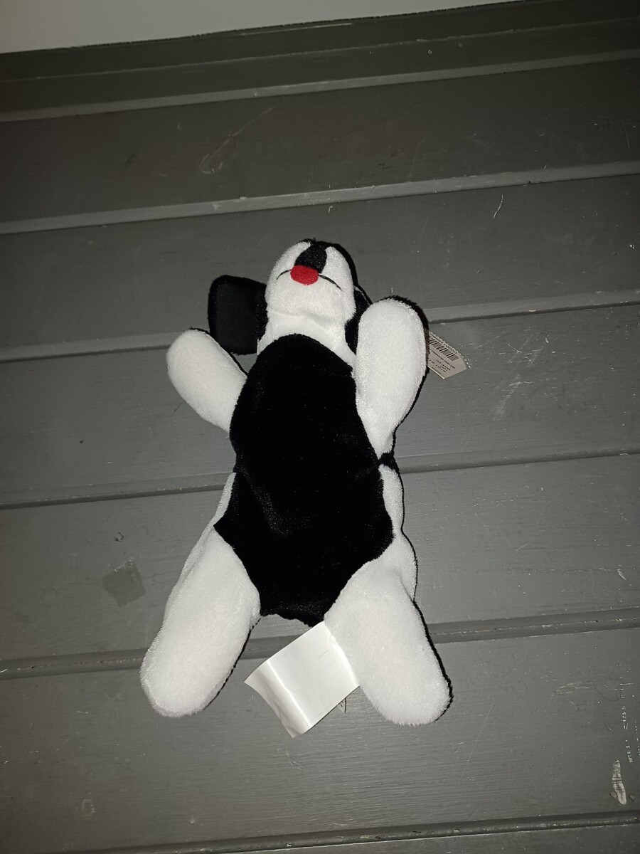 1980s Big Dogs Sportswear Beanie Saint Bernard Plush Puppy Black White 8"