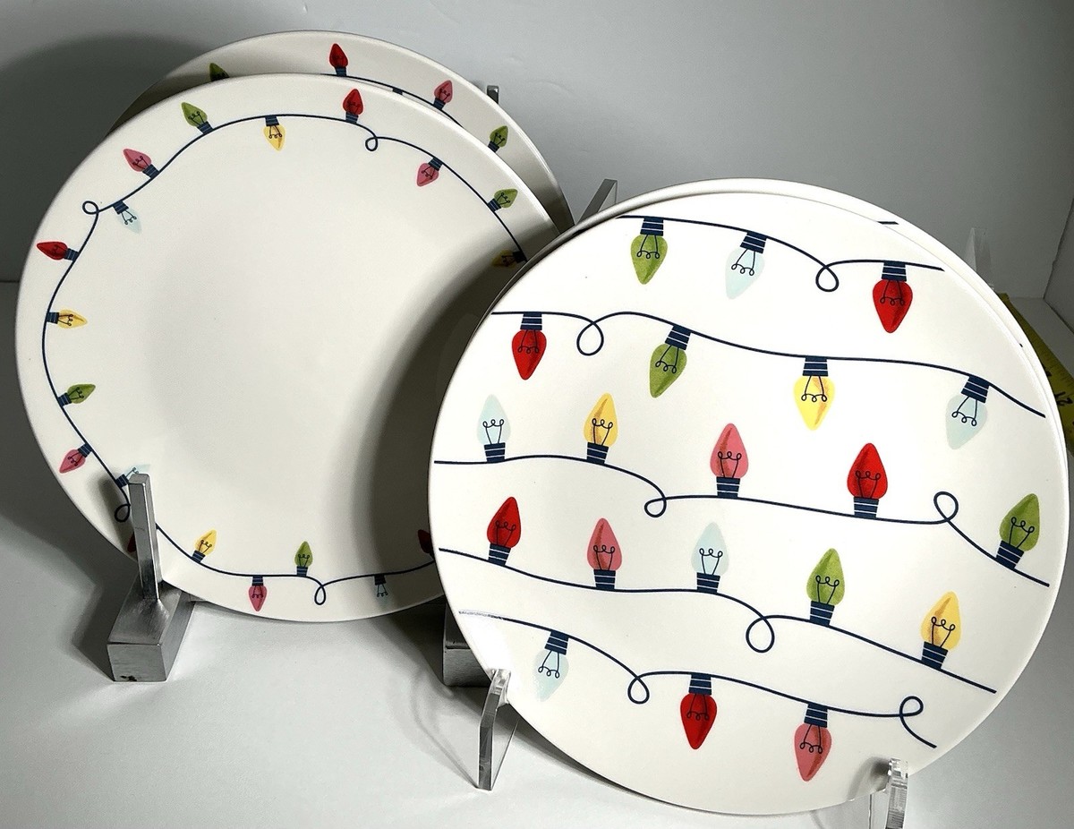 4 Elum Home CHRISTMAS LIGHTS 7.5 inch Appetizer, Dessert Plates New
