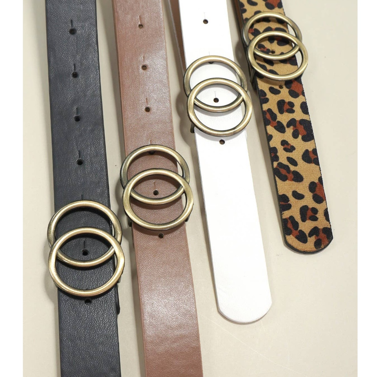 Double O Buckle Faux Leather Belt, a stylish and versatile accessory that combines contemporary design with practical functionality. This belt features a sleek vegan leather strap paired with a distinctive double O buckle.