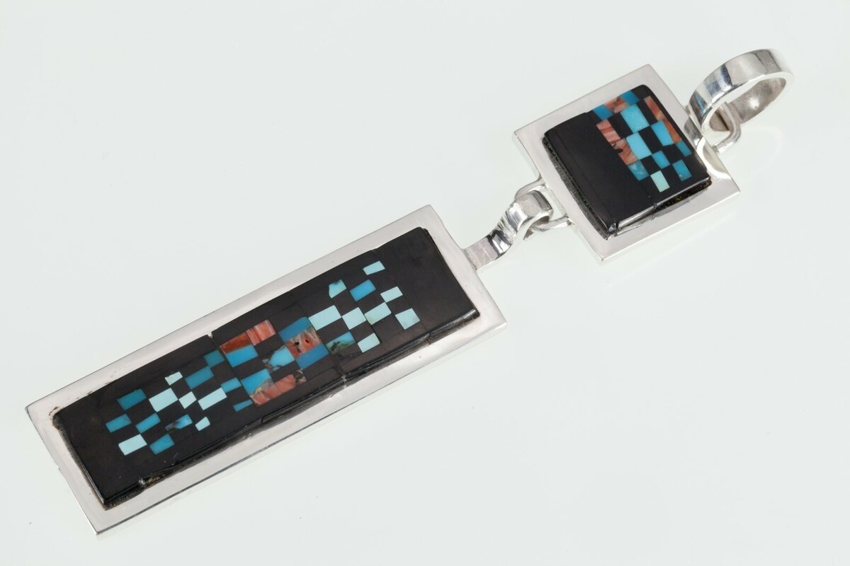 Alex Beeshligaii Navajo Incrustation Argent Sterling Pendentif 23.4gr