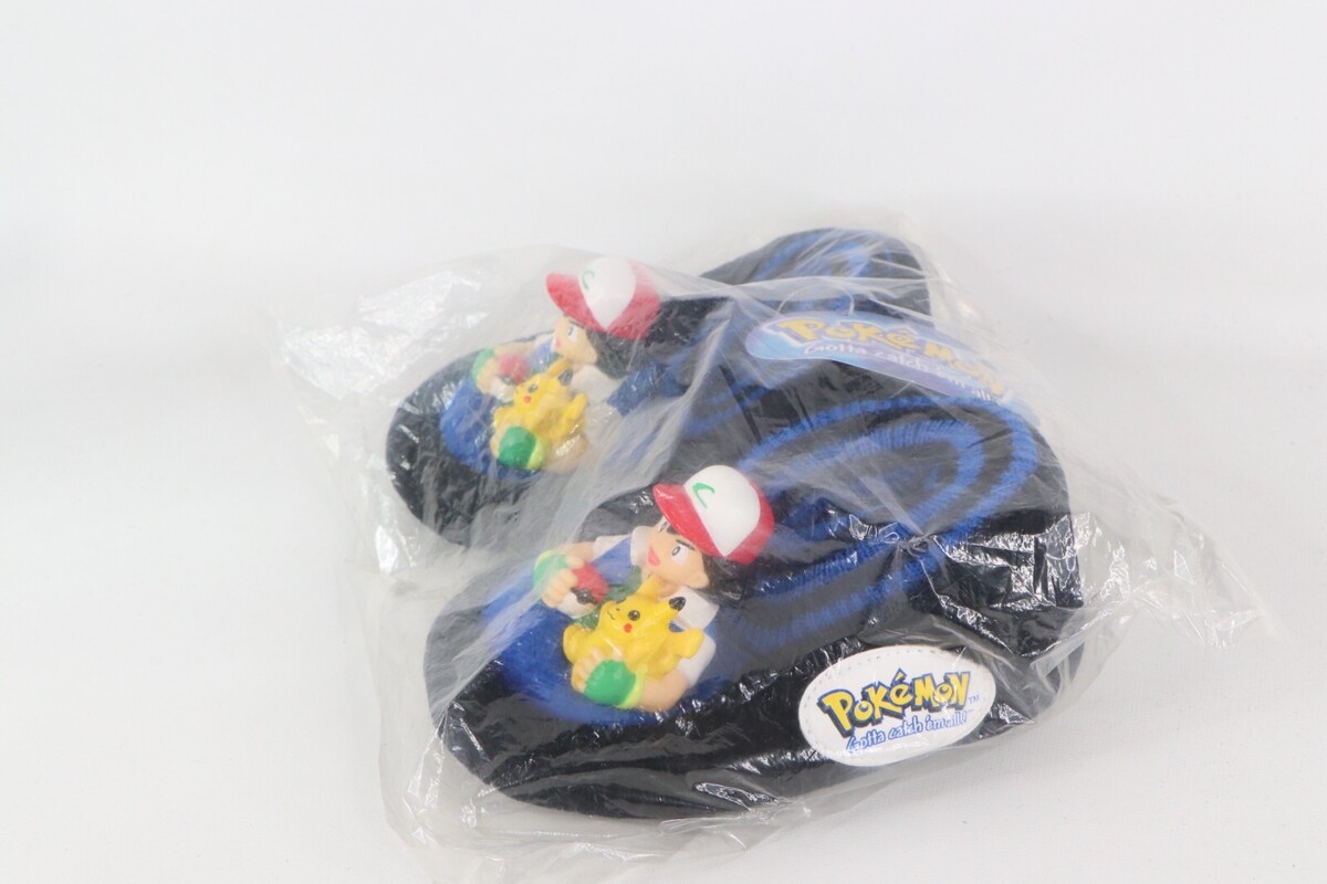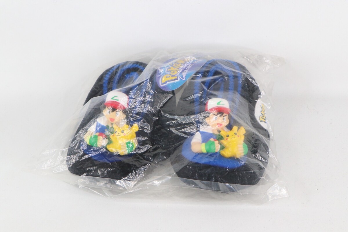 NOS Vintage 90s Pokemon Ash Ketchum House Slippers Shoes Black Youth Large 9-10