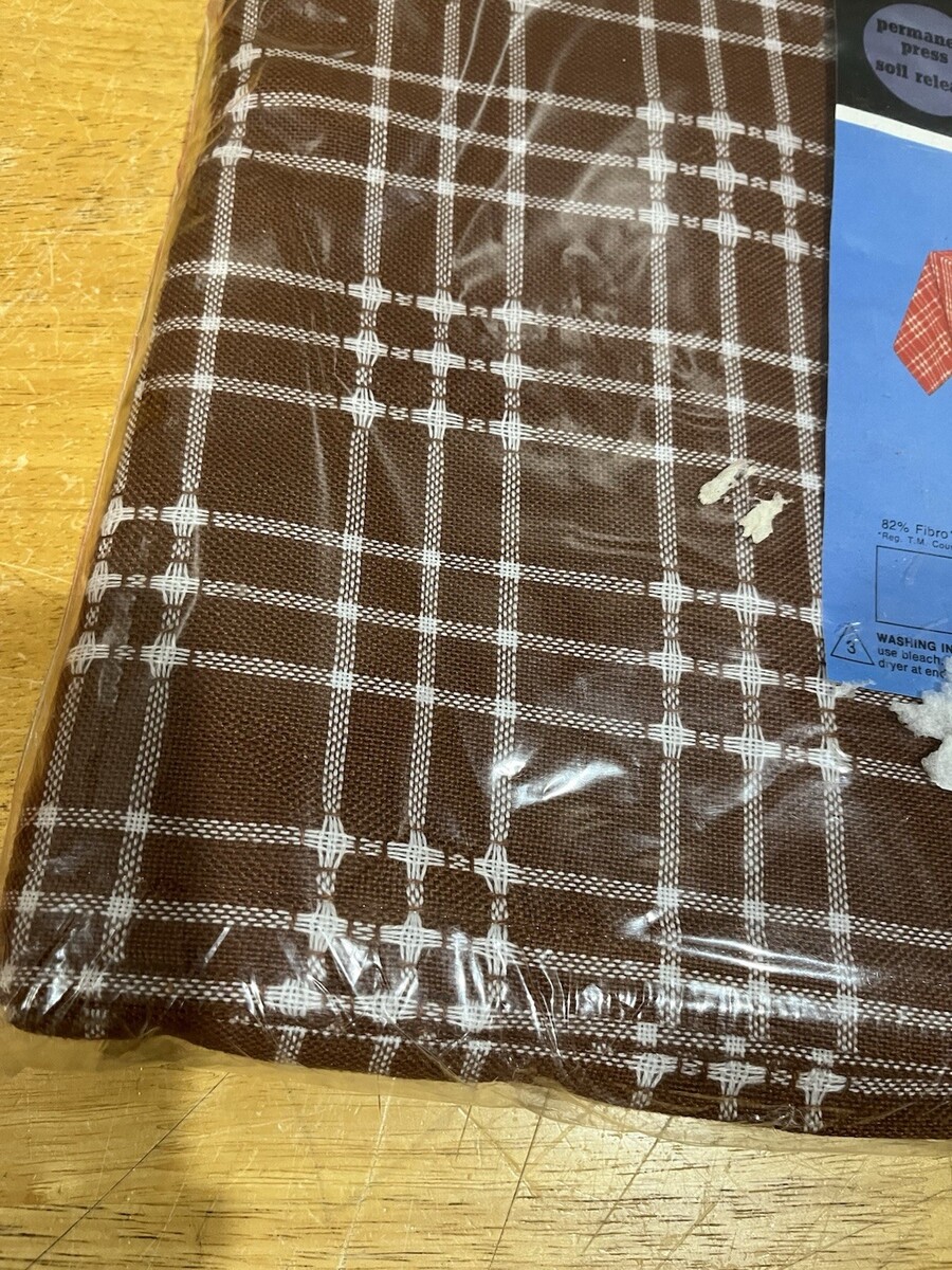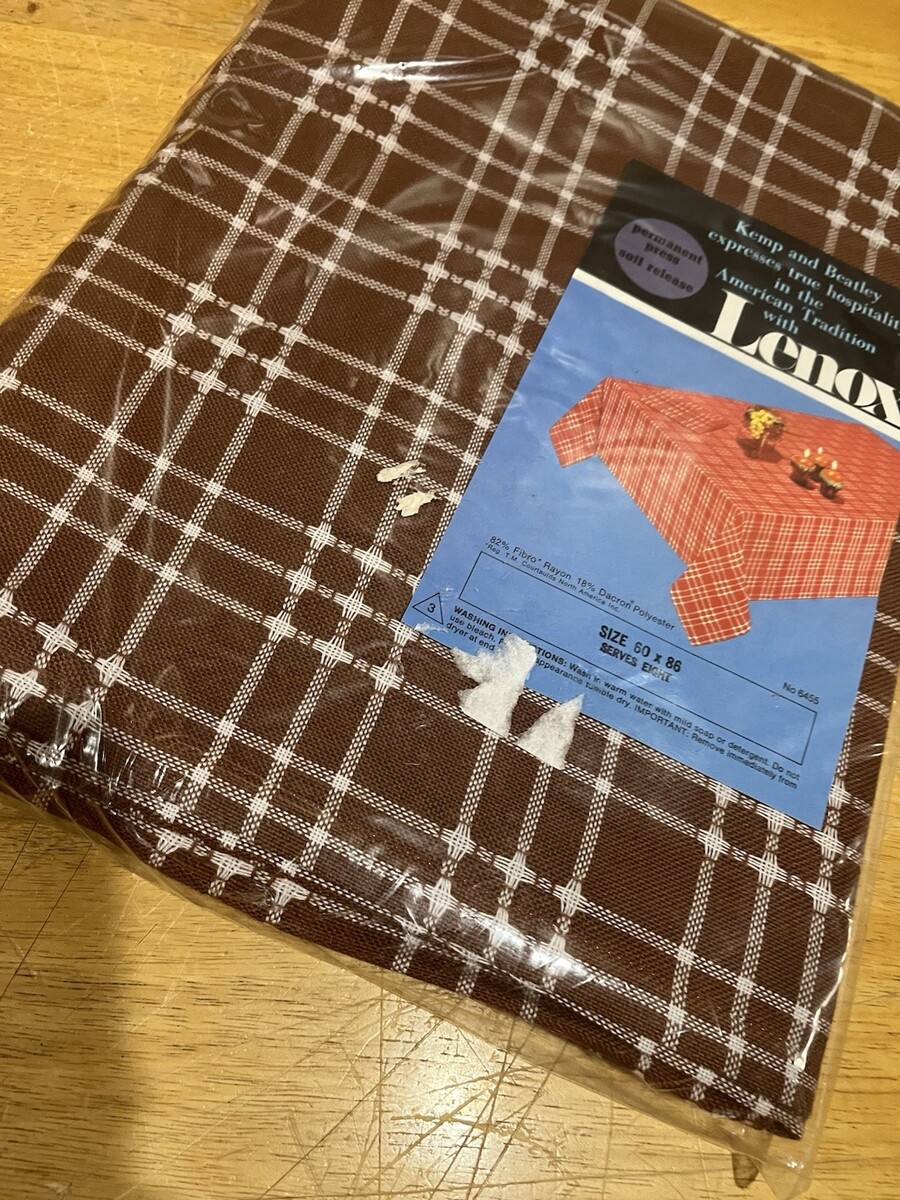Vtg Kemp Beatley Table Cloth Brick Brown Plaid 60x86" Country Cottagecore Lenox