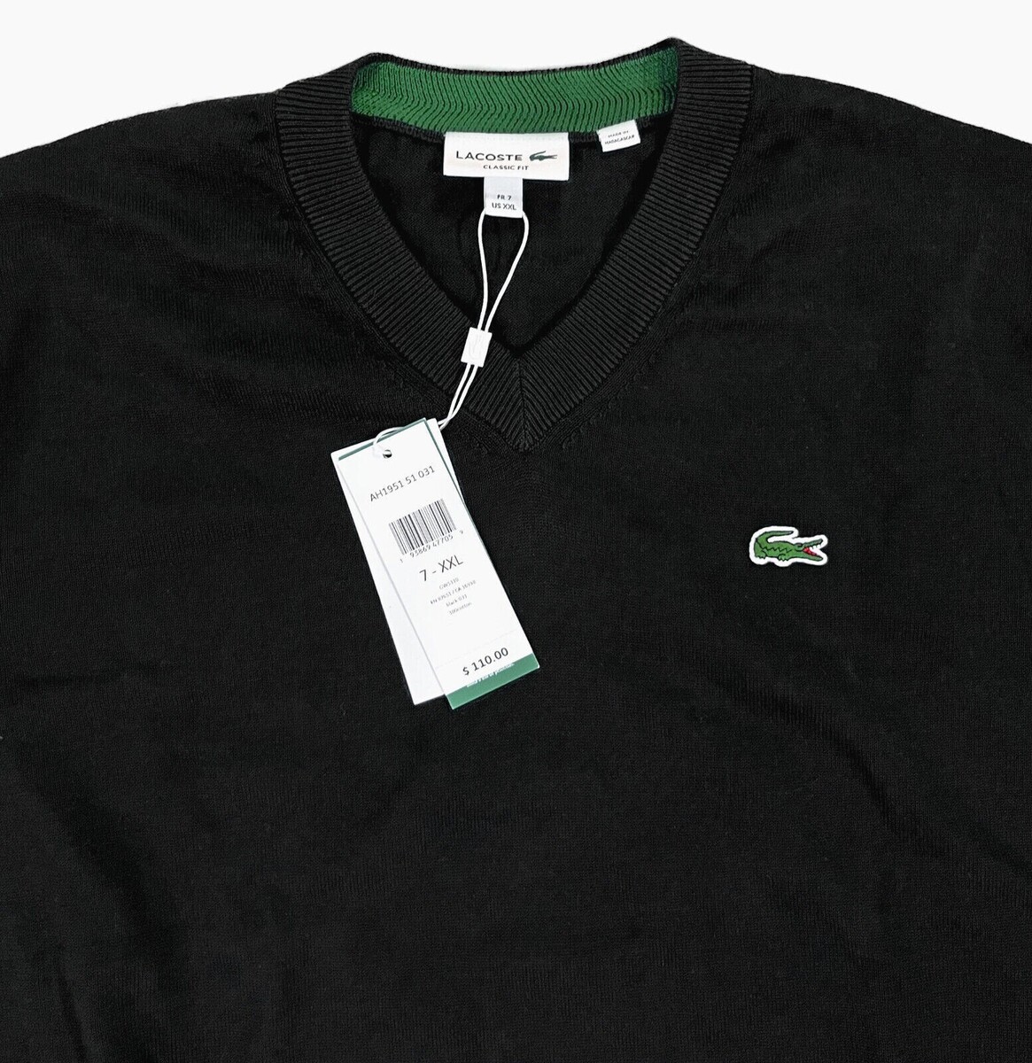 Complete your collection of basics with this signature solid V-neck sweater. Crafted in soft cotton jersey, it asserts exquisite ribbed finishes and an embroidered green crocodile on the chest. Warm up your favorite T-shirts and polos with this essential garment.