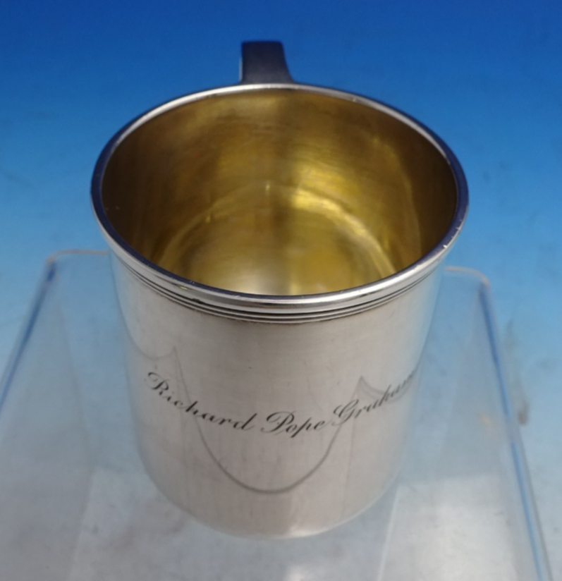 Wonderful Faneuil by Tiffany and Co sterling silver baby cup with gold washed interior marked #4105B/5348. This cup measures 2 3/4 tall" x 2 1/2" and weighs 4.0 troy ounces. It is engraved "Richard Pope Graham" (see photos), and is in good estate condition as shown. Charming!