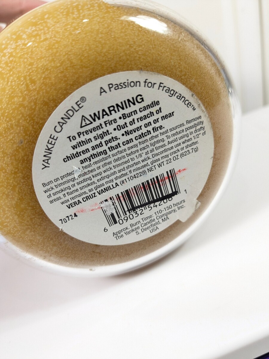 Yankee Candle Vera Cruz Vanilla World Jar 22oz half full white label jar RARE