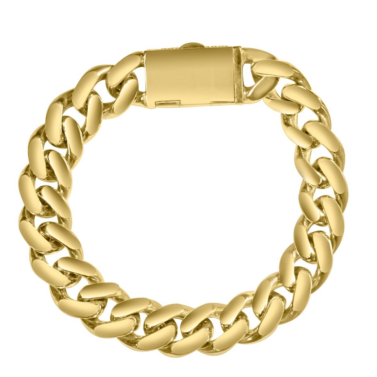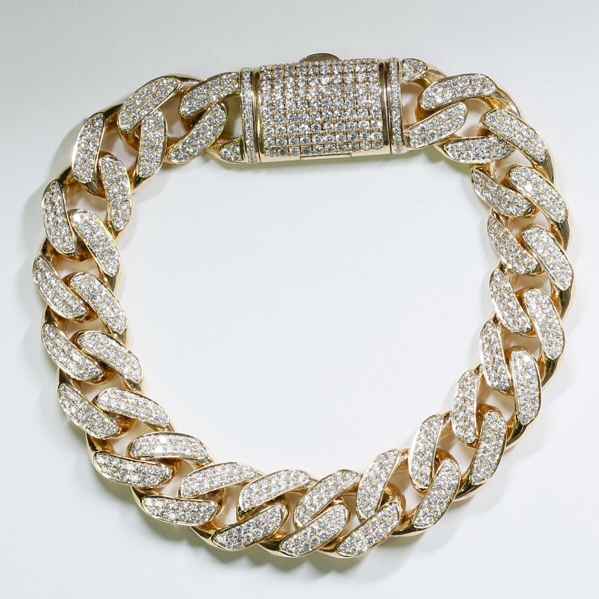 10 quilates Miami Cuban Link Diamond Men's Bracelet 14K Gold amarillo 89.3 gr 8.75 ''