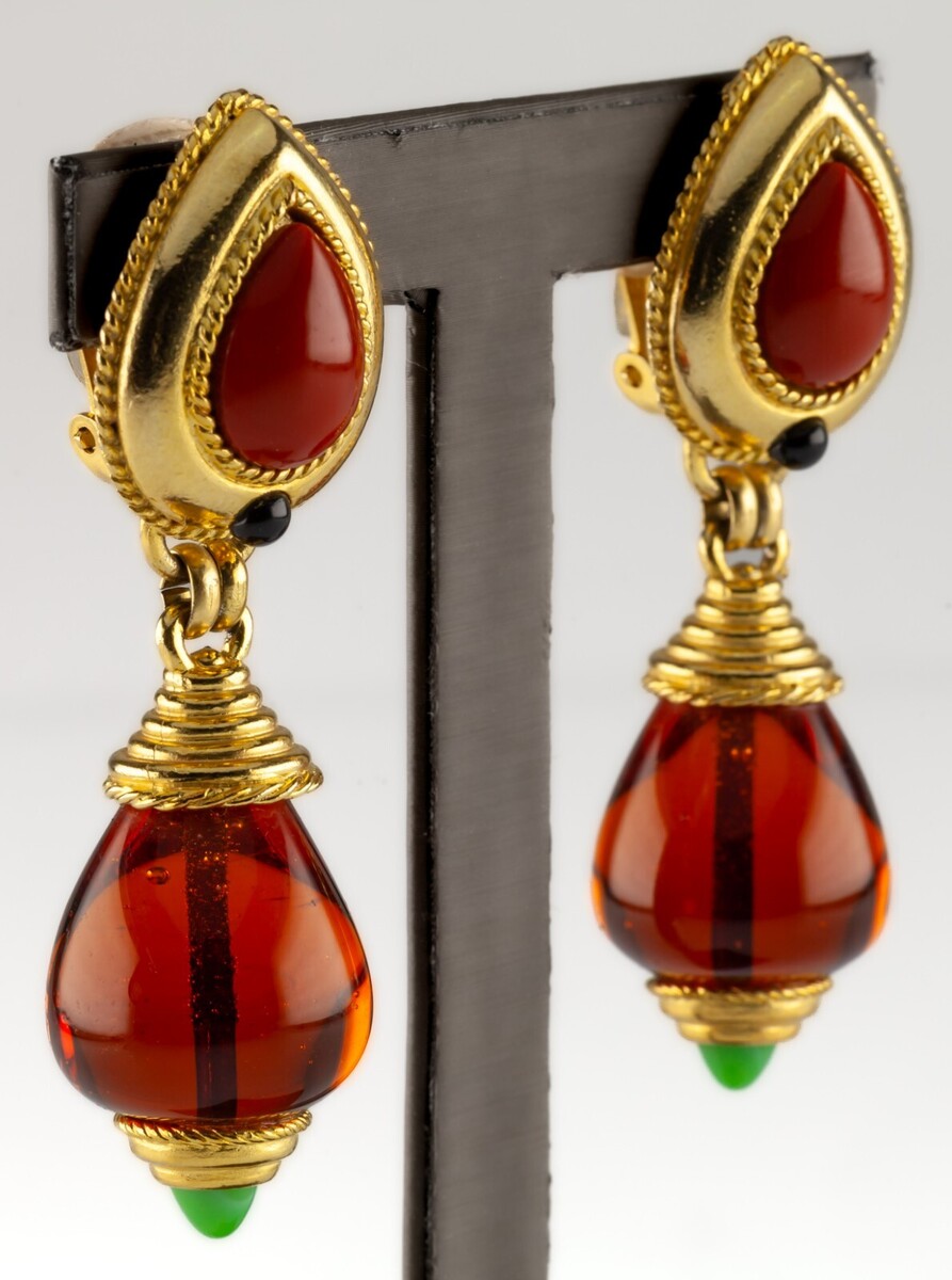 Roxanne Assoulian Amber Drop Costume Ear Clips Boucles d?oreilles annees 1980 Superbe!