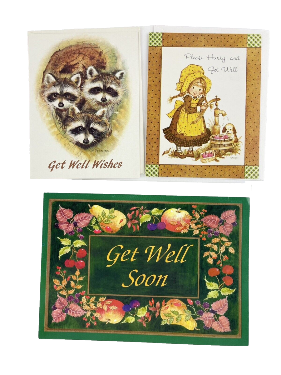Get Well Greeting Card Assortment Floral Cat Bear Raccoon Duck 11 Cards and Env