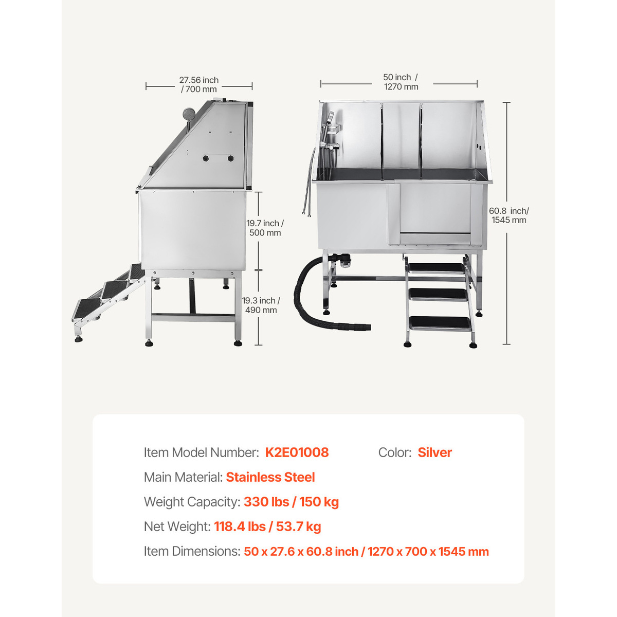 VEVOR Stainless Steel Dog Washing Station 50 Inch Pet Grooming Tub (Right Door)