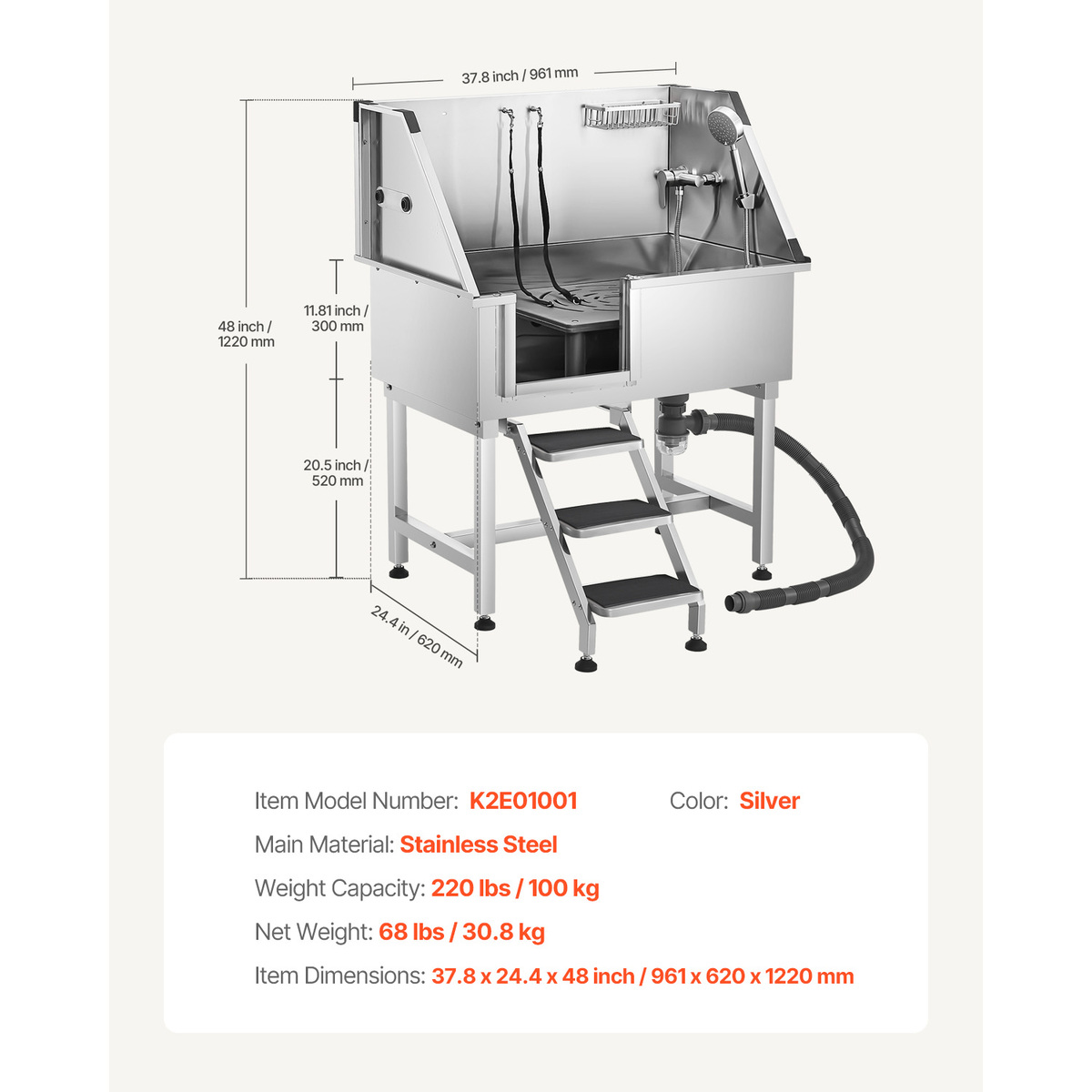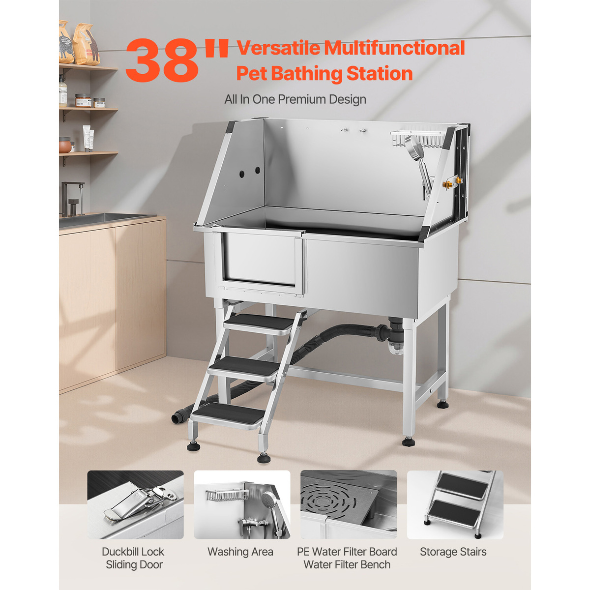 VEVOR 38 Inch Stainless Steel Dog Washing Station, Pet Grooming Tub (Left Door)