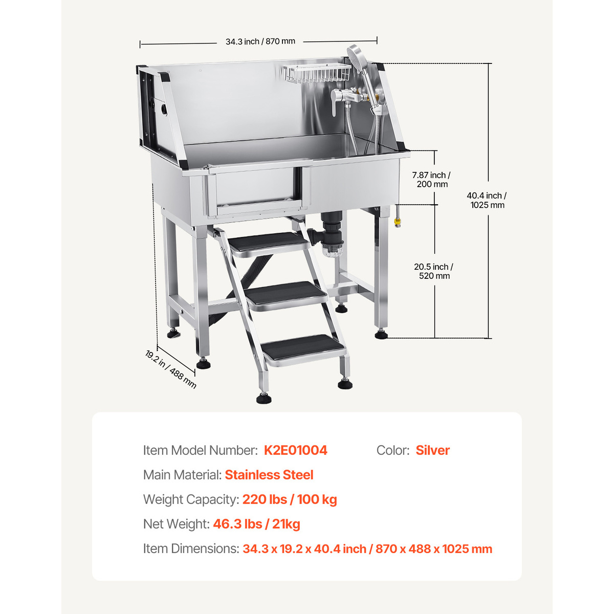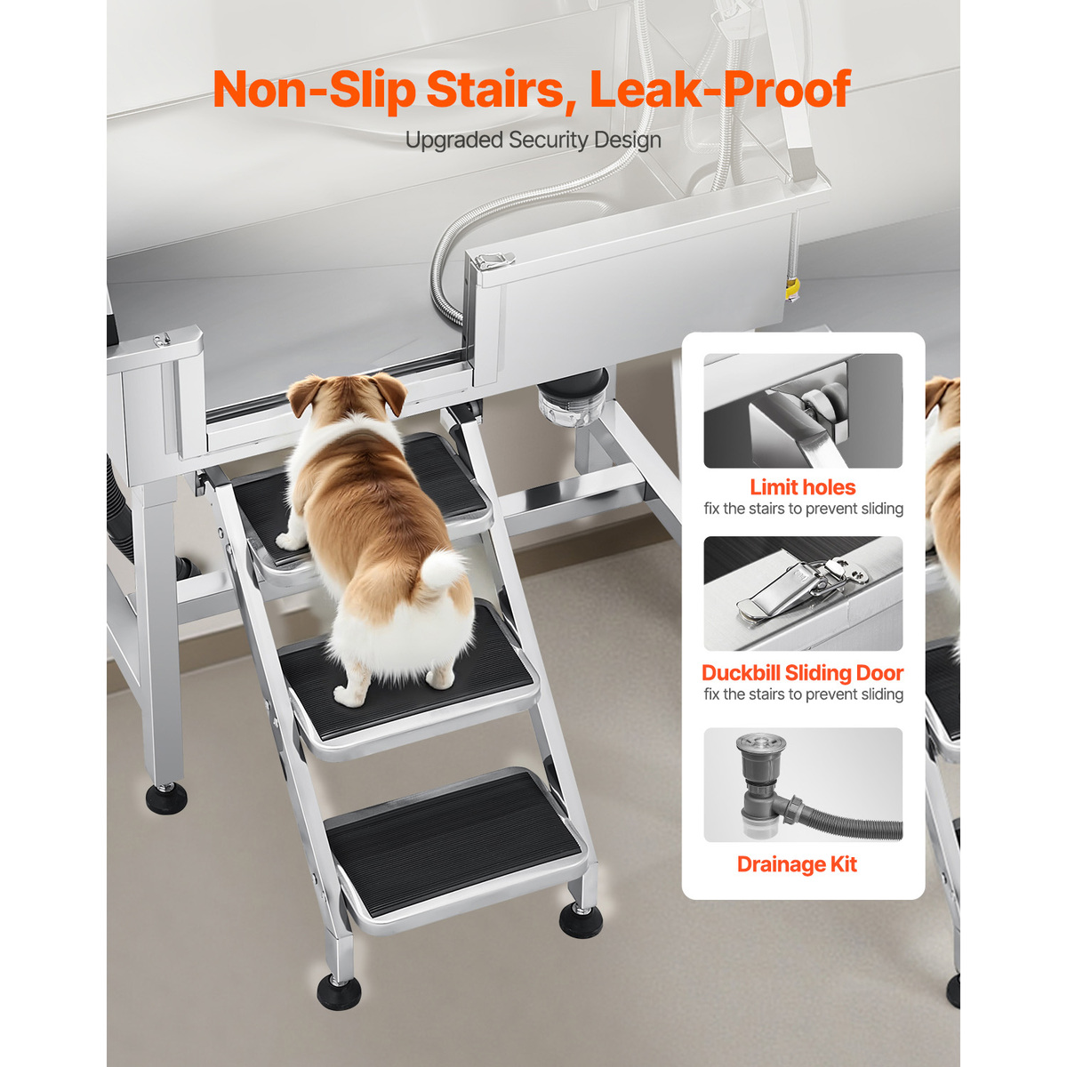 VEVOR 34 Inch Stainless Steel Dog Washing Station, Pet Grooming Tub (Left Door)