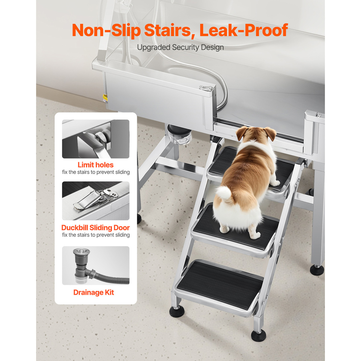 Anti-Slip and Leak-Proof: The upgraded sealing system and anti-slip stairs with limit holes ensure stability, avoiding wobbling and slipping when pets enter and exit. The drainage kit keeps smells at bay, ensuring zero water accumulation and no leaks during bath time