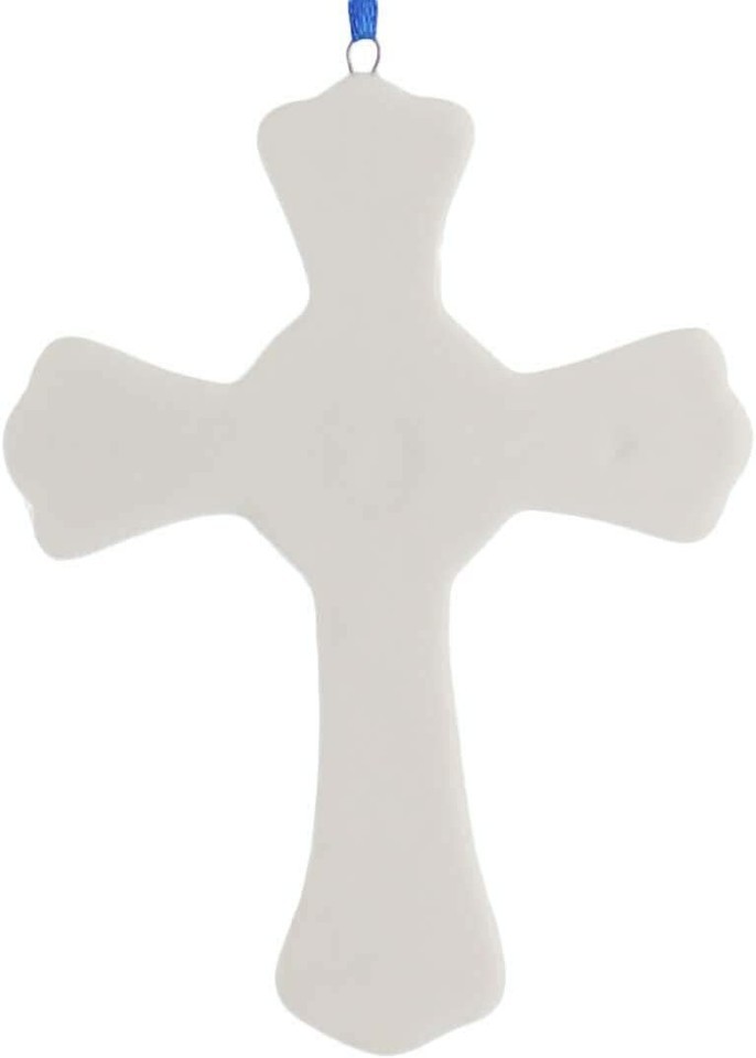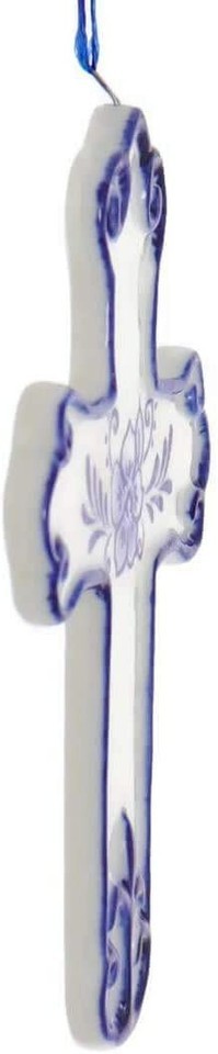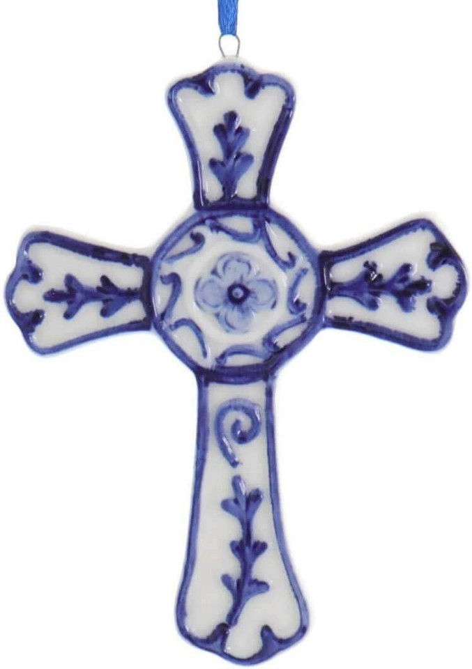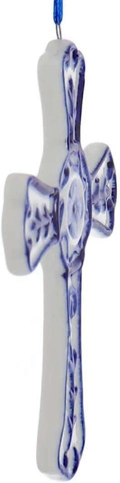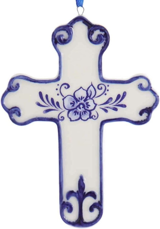 KURT ADLER SET OF 2 PORCELAIN DELFT BLUE CROSS CHRISTMAS ORNAMENTS J7314
