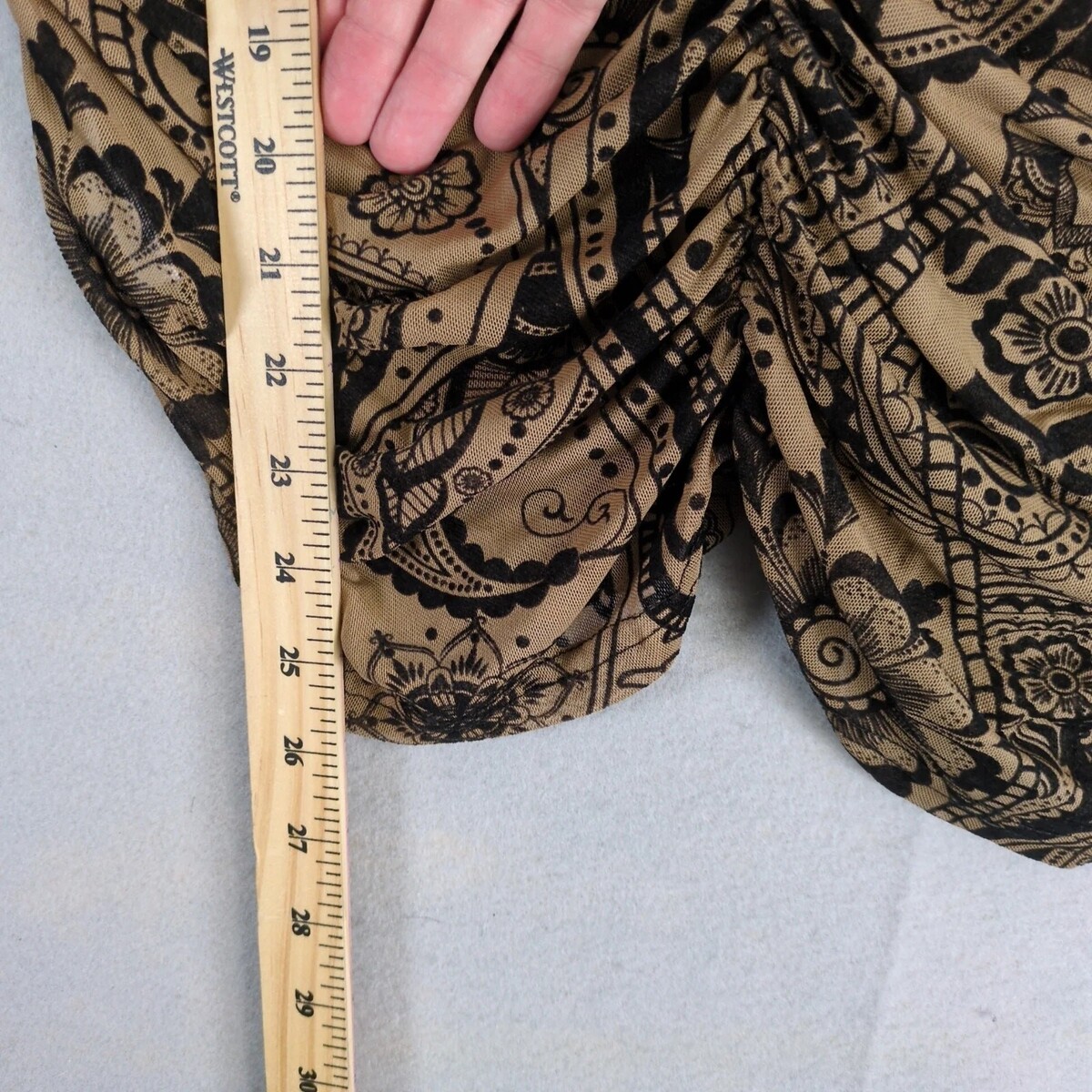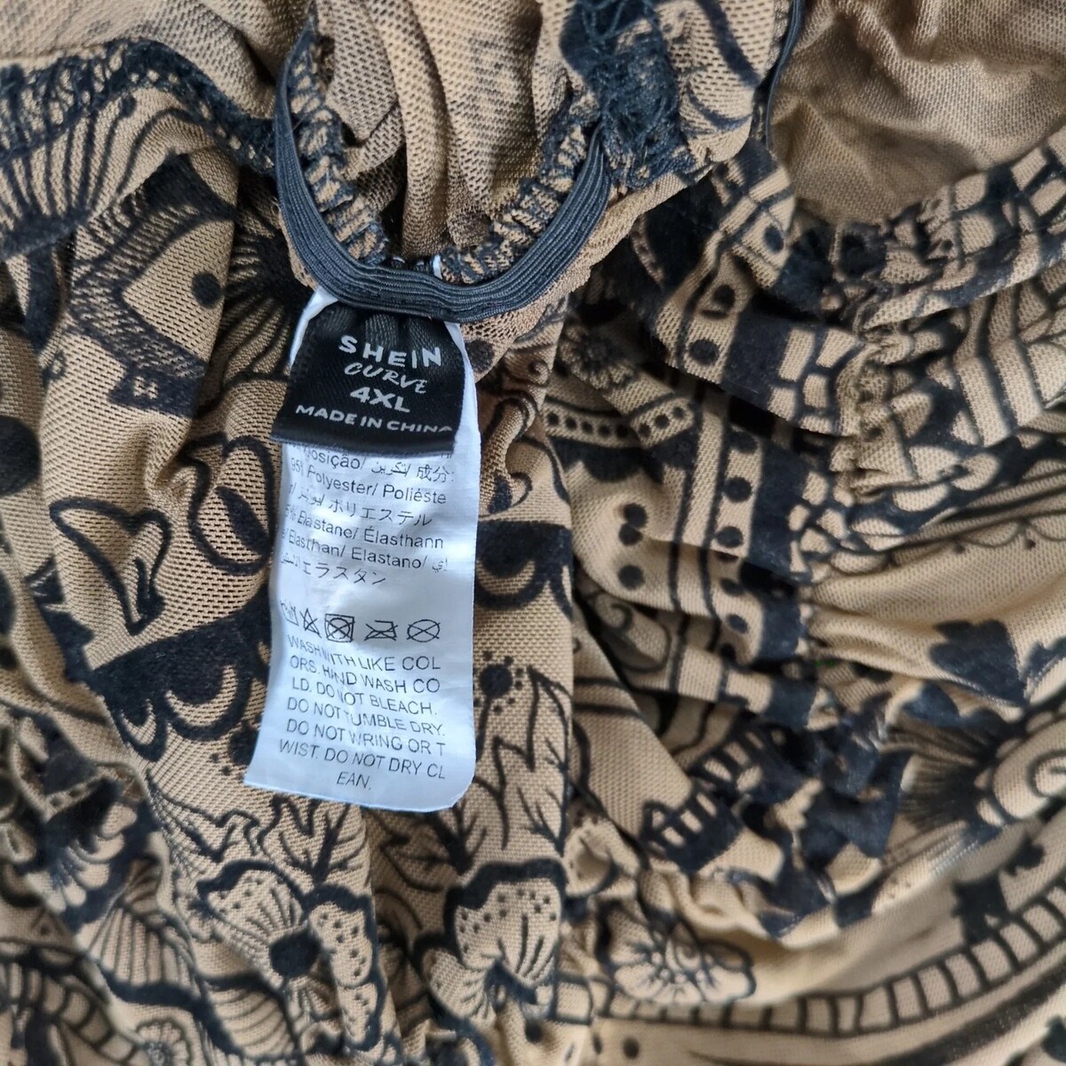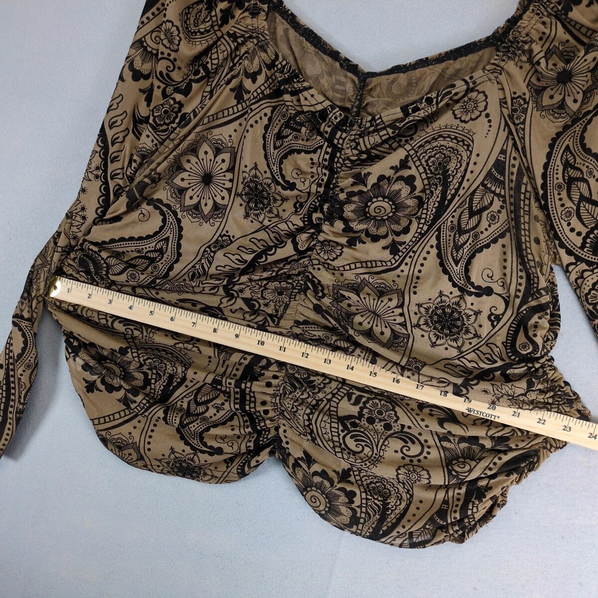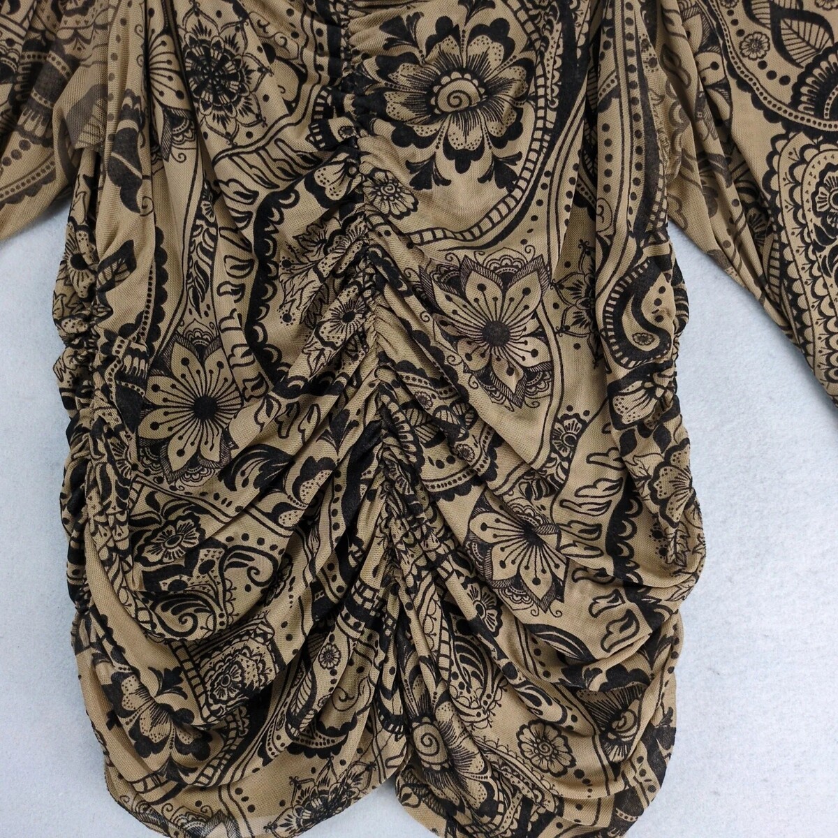 Shein Curve Brown Sheer Black Velour Ruched Top Women's Plus Size 4XL Paisley