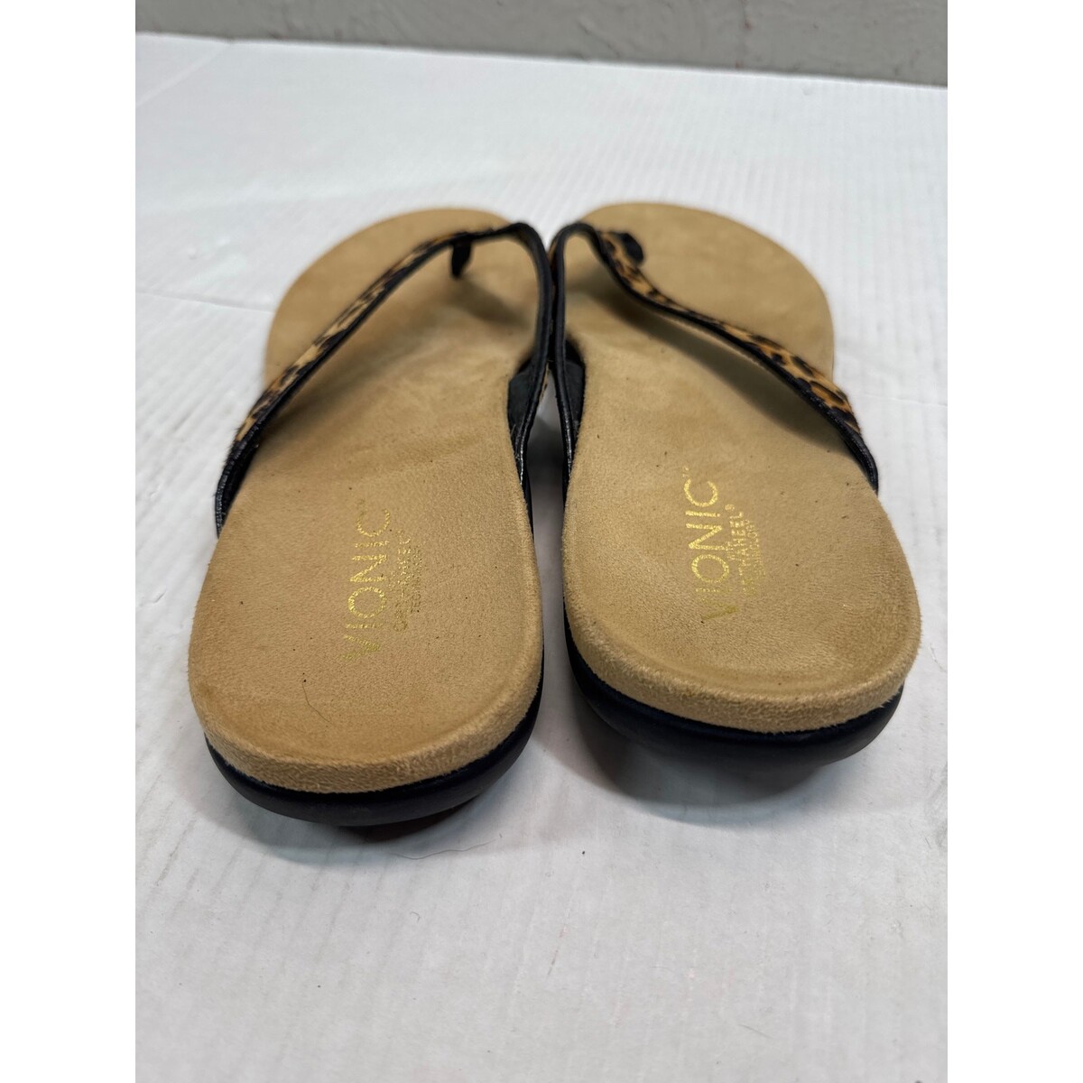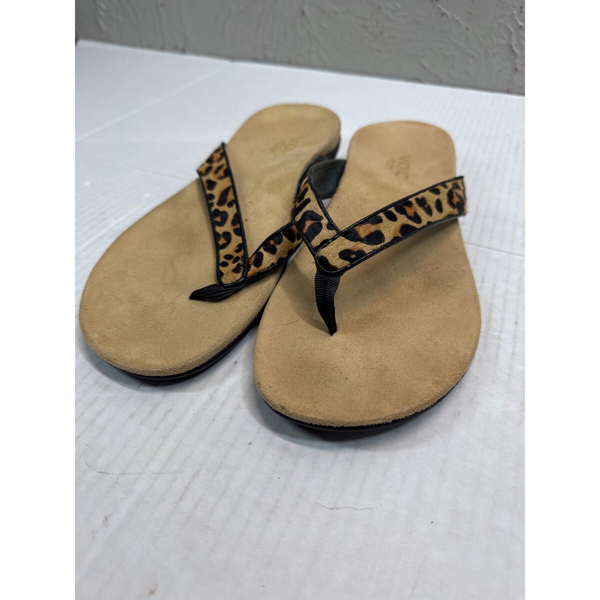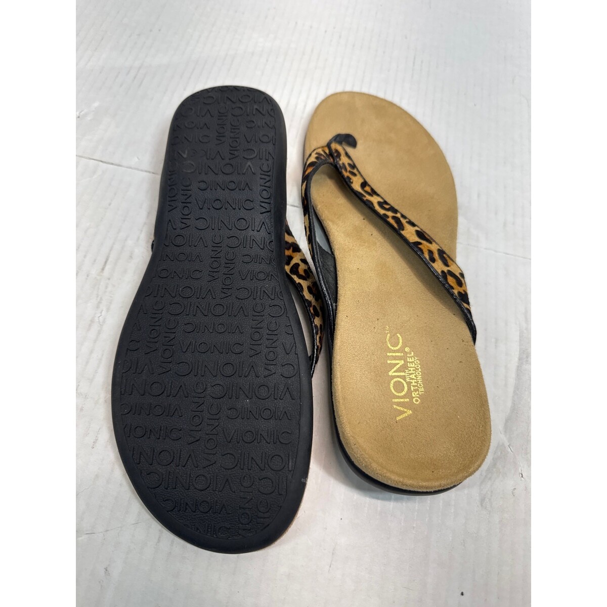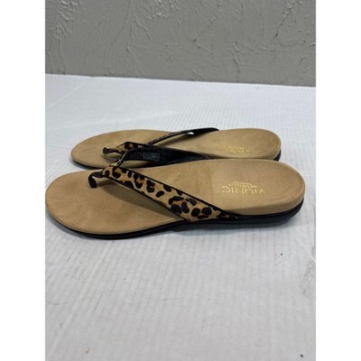 Vionic Selena Orthaheel Leopard Print Leather Calf Hair Flip Flop Sandals Sz 10